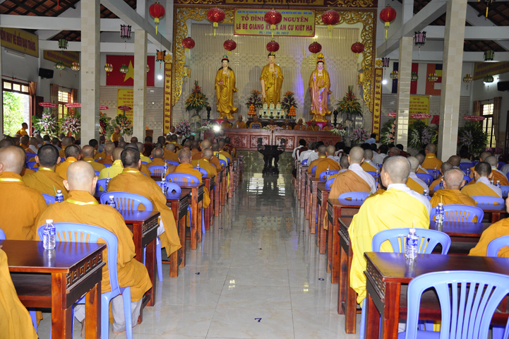Buổi lễ còn được Hoà thượng Thích Minh Thiện: Uỷ viên trực Hội Đồng Trị sự Trung ương, Phó ban Hoằng pháp kiêm Trưởng giảng sư đoàn Trung ương giáo hội Phật giáo Việt Nam, Trưởng ban Trị sự Giáo hội Phật giáo Việt Nam tỉnh Long An đạo từ. Hòa thượng khi khen ngợi hành giả an cư và nhắn nhủ Tăng Ni phát huy vai trò “ Hộ quốc an dân” từ khi Phật giáo mới du nhập và mãi mãi về sau. Hòa thượng nhắc đại chúng về tôn chỉ hoạt động của Trung ương giáo hội “ Trí tuệ – Kỷ cương – Hội nhập – Phát triển” mong rằng Tăng Ni sau khi mãn hạ về trú xứ của mình tu và học trên tinh thần ấy.