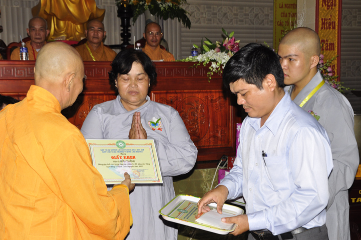 Những hành giả tinh tấn tu học theo Giới luật, theo nội quy hạ trường được ban tổ chức khen thưởng khích lệ và được nhận quà từ Hòa thượng Thích Thiện Huệ – Chứng minh ban Trị sự Giáo hội Phật giáo Việt Nam tỉnh Long An.