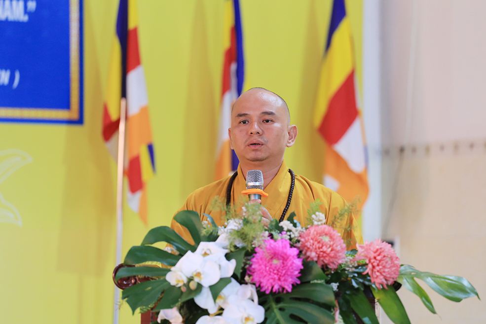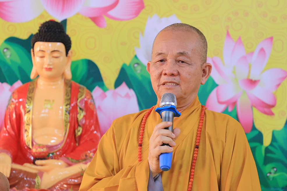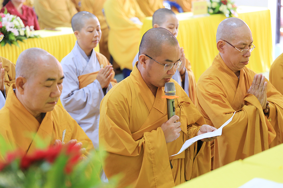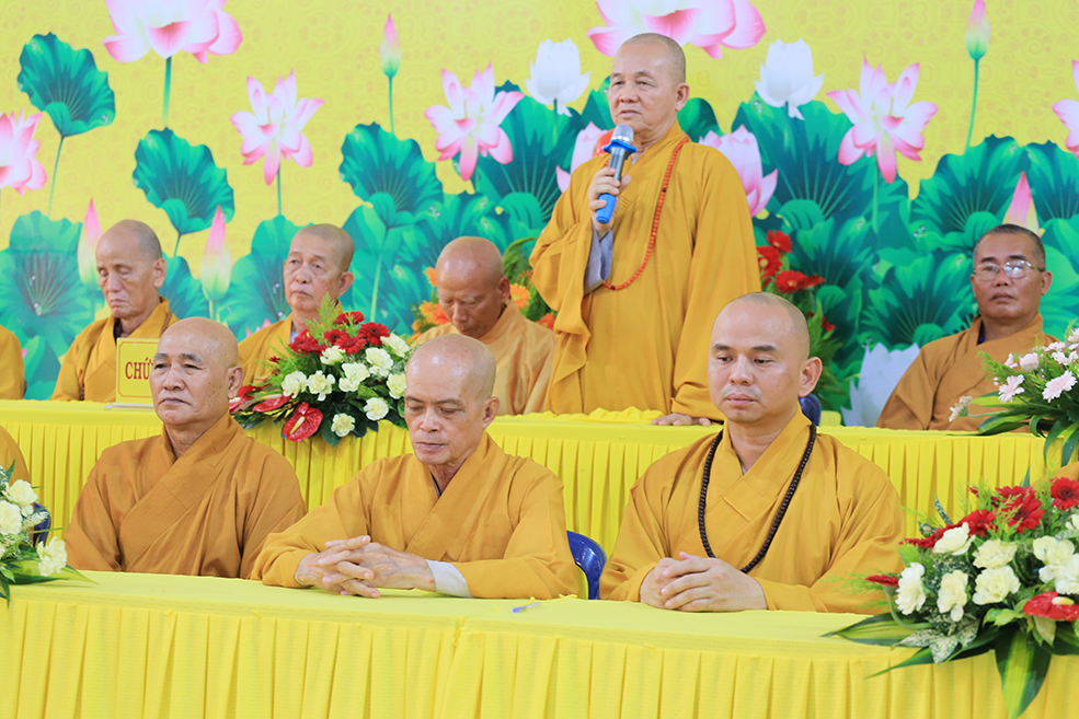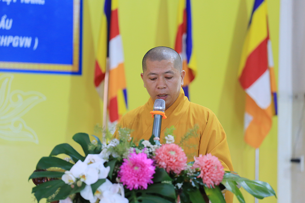 Đại đức Thích Lệ Duyên – Phó Trưởng ban, Chánh Thư ký BTS GHPGVN tỉnh Long An đã phát biểu cảm tạ, tri ân chư tôn đức hoàn mãn buổi lễ.