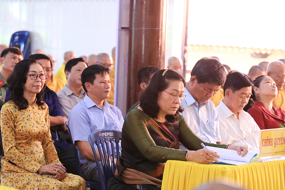 Về phía chính quyền có: ông Võ Lê Tuấn – Nguyên ủy viên BTV Huyện ủy, Chủ tịch UB MTTQ VN tỉnh Long An; bà Phạm Ngọc Tiệp – Phó Chủ tịch UB MTTQVN tỉnh; ông Nguyễn Văn Mưng – Trưởng ban Tôn giáo tỉnh; ông Nguyễn Văn Biển – Trưởng phòng PA02 Công an tỉnh; ông Phan Văn Tới – Phó Chủ tịch UBND huyện Thủ Thừa; bà Trần Thị Tiến – Chủ tịch UB MTTQVN huyện Thủ Thừa; cùng đại diện các cấp lãnh đạo chính quyền tỉnh Long An, huyện Thủ Thừa, xã Bình thạnh sở tại.
