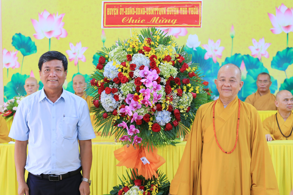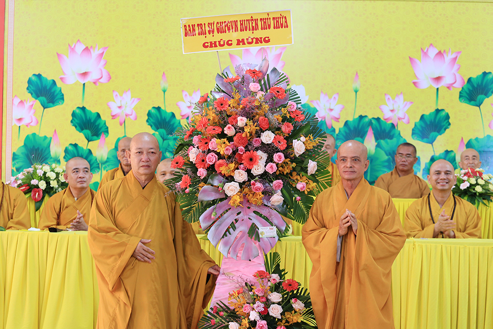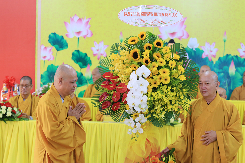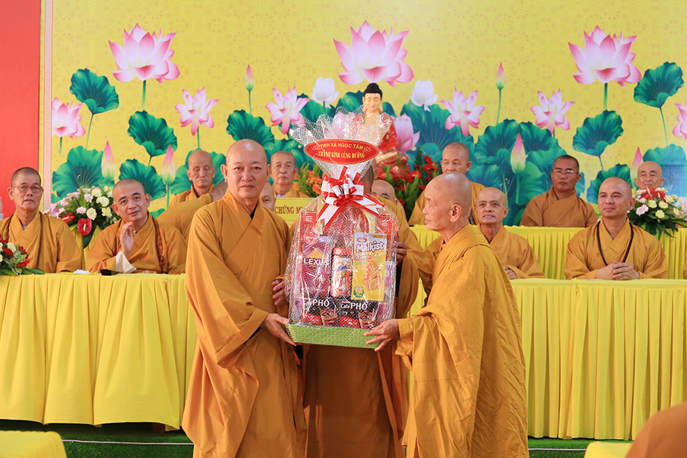 Buổi lễ được đón nhận nhiều lẵng hoa và phần quà quý báu từ Chư tôn Hòa thượng, chư tôn đức Trụ trì trú xứ các tự viện, chư tôn đức các BTS huyện thị trực thuộc tỉnh, quý vị khách quý lãnh đạo chính quyền kính tặng.