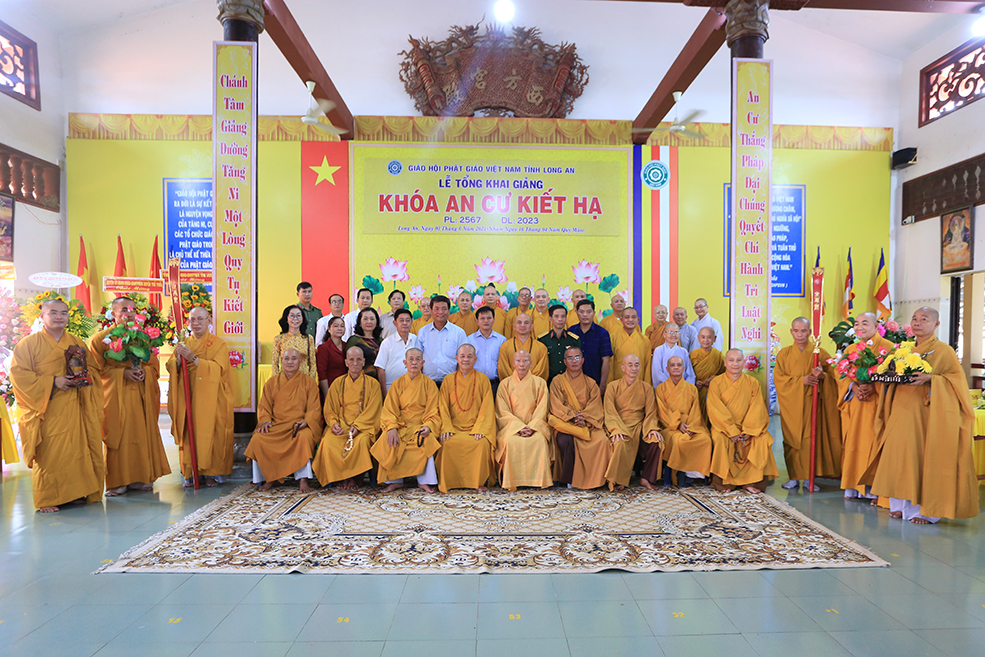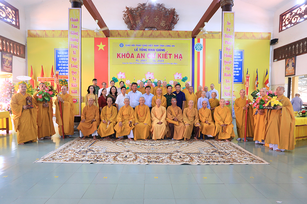 Sáng ngày 03 tháng 6 năm 2023 ( nhằm ngày 16 tháng 4 năm Qúy Mão), tại chùa Kim Cang, huyện Thủ Thừa, tỉnh Long An, Ban Thường trực Ban trị sự GHPGVN tỉnh Long An long trọng tổ chức lễ tổng Khai giảng Khóa An cư Phật lịch 2567 cho 12 trú xứ An cư tỉnh Long An.