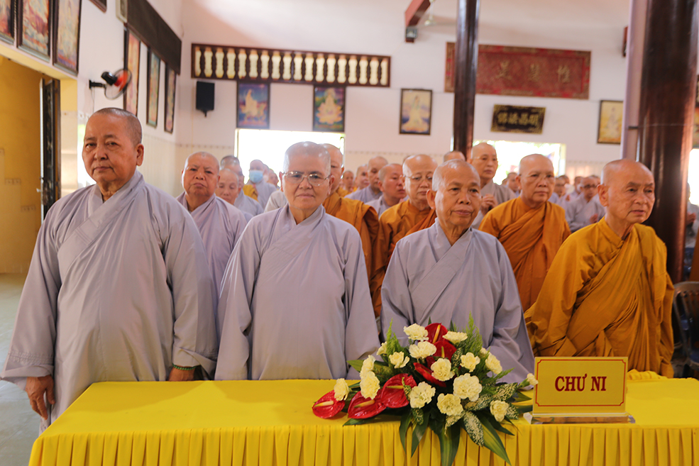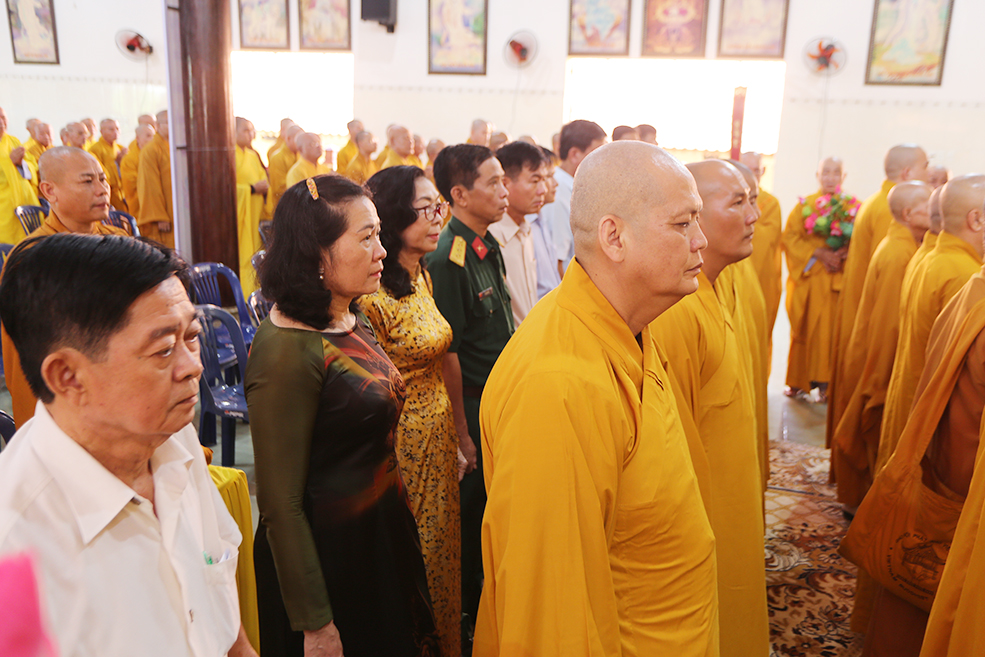 Chứng minh tham dự buổi lễ có, HT. Thích Huệ Hồng, HT Thích Thiện Tài, Hòa thượng Thích Quảng Ý- Đồng chứng minh BTS.GHPGVN tỉnh Long An; HT. Thích Minh Thiện- Ủy viên HĐTSTƯ, Phó Ban Hoằng pháp trung ương, Trưởng Ban trị Sự GHPGVN tỉnh Long An, Trưởng Ban tổ chức khóa an cư kiết hạ tỉnh; TT. Thích Quảng Tâm- Ủy viên HĐTS, Phó thường Trực Ban Trị sự GHPGVN tỉnh; Chư tôn đức Phó BTS GHPGVVN tỉnh: HT. Thích Tắc Phi, TT. Thích Minh Thọ, TT. Thích Đức Hoàng, ĐĐ. Thích Lệ Duyên, ĐĐ. Thích Lệ Ngôn, NT. TN. Gương Liên, NT. TN. Như Tâm; Chư tôn đức Ban Thường trực BTS GHPGVN tỉnh Long An, các huyện, thị xã, thành phố trực thuộc; Chư tôn đức ban chức sự hạ trường và hành giả 12 trú xứ an cư.