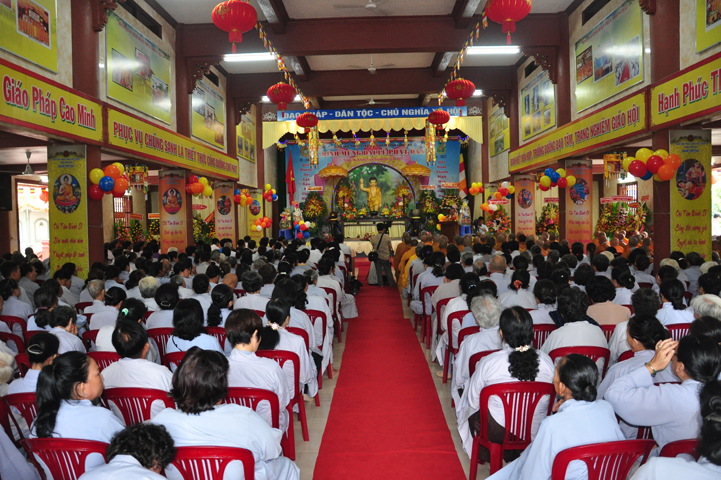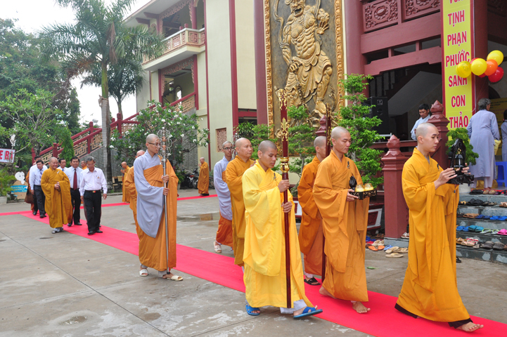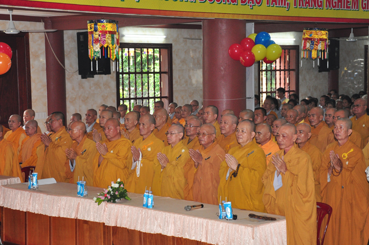 Từ lúc sáng sớm, Ban tổ chức đã cung đón chư tôn đức giáo phẩm Tăng, chư Ni, Phật tử trong cả tỉnh và thân tiếp quý vị lãnh đạo chính quyền về tham dự.