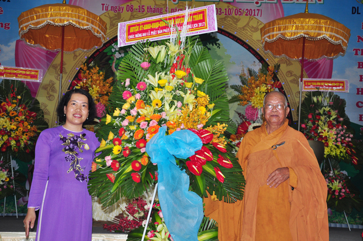 Tại Đại lễ, Ban tổ chức đã đón nhận nhiều lẵng hoa, phần quà của các cơ quan Ban ngành Tỉnh, Huyện, Phật giáo 12 huyện, thị, thành phố trân trọng gởi đến chúc mừng nhân ngày Đại lễ Phật đản.