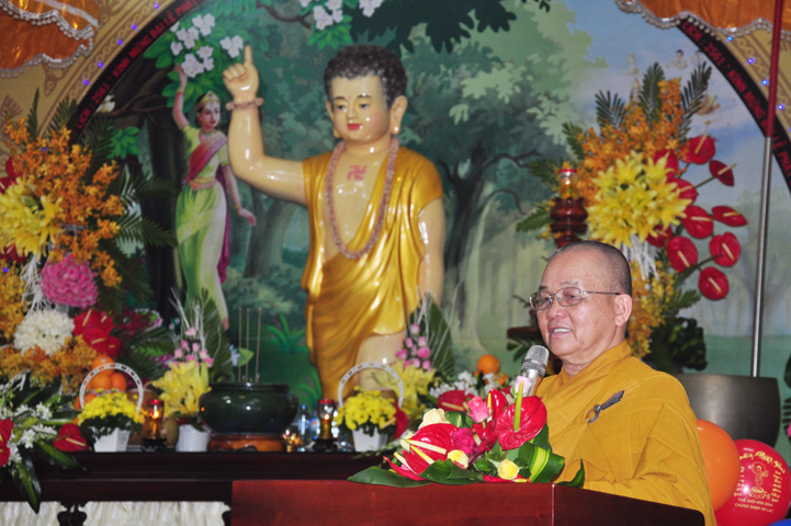 Tiếp theo đó, TT. Thích Minh Thọ, UV HĐTS, Phó ban Thường trực BTS GHPGVN tỉnh đọc diễn văn Phật đản của Hòa thượng Chủ tịch HĐTS GHPGVN. Diễn văn đã nhấn mạnh vị trí thiết yếu của Đạo Phật trong lòng dân tộc, là một tôn giáo đạo đức có đầy đủ các phương pháp biện chứng thực tiễn đưa con người đến một đời sống nhân bản hướng thượng; một cuộc sống hài hòa giữa thân và tâm, an lạc, hạnh phúc qua thực hành Giới – Định – Tuệ theo con đường Trung đạo. Trong đó, Tăng-già đóng vai trò quan trọng trong việc duy trì Phật giáo trường tồn từ thế hệ này sang thế hệ khác.