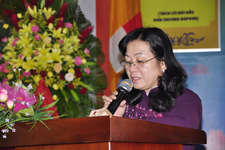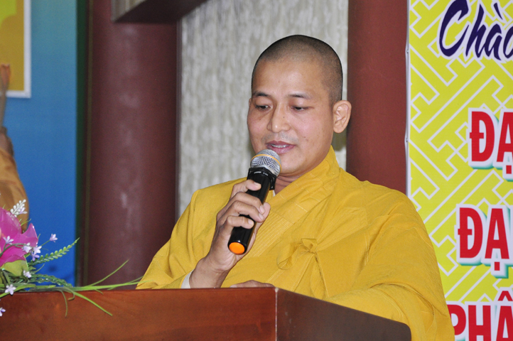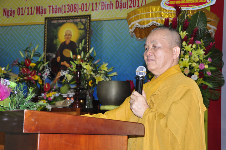 Thích Minh Thiện- Thay mặt Thường trực Ban trị sự tỉnh nêu lên ý nghĩa Lễ tưởng niệm, đồng thời tuyên đọc Văn Tưởng niệm Đức vua – Phật Hoàng Trần Nhân Tông nhập Niết bàn của Giáo Hội Phật giáo Việt Nam và tỉnh Long An.