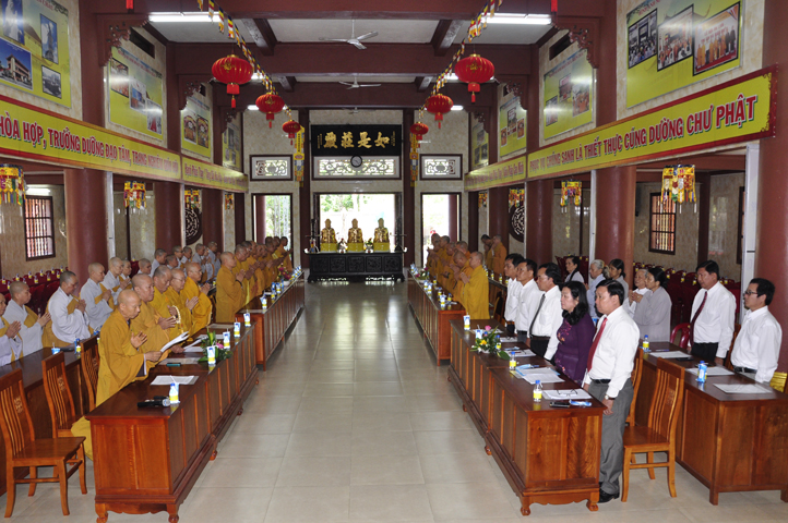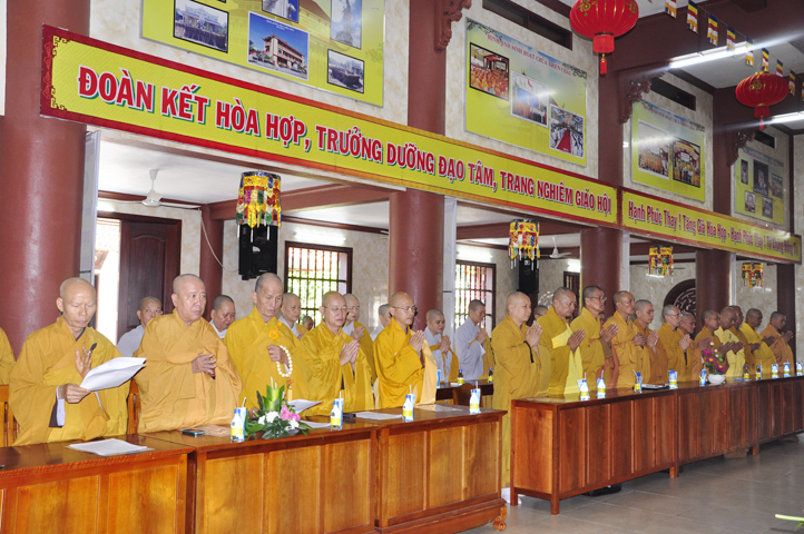 HT. Thích Minh Thiện đã nhấn mạnh: “Trước lễ đài tôn nghiêm toàn thể Tăng Ni, tín đồ Phật giáo tỉnh Long An xin đốt nén tâm hương ngũ phần, dâng lời tưởng niệm chân thành, tâm cảm ý giao, một lòng thành kính cúi đầu đảnh lễ Lịch đại Tổ sư, phát nguyện phụng trì Phật pháp, phát huy chân lý Đạo nhà, giữ gìn Tổ ấn vàng son, làm rạng rỡ vang danh chốn Tổ huy hoàng tráng lệ, non sông gấm vóc thiên thành, một cõi vững bền muôn thuở. Đồng thành kính nguyện thực hành: Giữ gìn tinh thần đoàn kết hòa hợp dân tộc, độc lập Tổ quốc; nêu cao tinh thần phóng khoáng, bao dung trong cộng đồng dân tộc và xã hội, đoàn kết các Tôn giáo, để cùng tồn tại và phát triển, thực hiện hữu hiệu phương châm “tốt Đời đẹp Đạo”, duy trì truyền thống dân tộc, tự lực, tự cường, phát huy nội lực, đồng thời nhờ ngoại lực để phát huy Đạo giáo và đất nước phồn vinh, văn minh tiến bộ; tạo dựng Cực lạc tại nhân gian trong lòng người, bằng triết lý Thiền là sống, là tâm từ bi chan chứa mọi loài, trong kiếp hiện tại và mai sau của trần thế, thực hành Bồ Tát đạo“.
