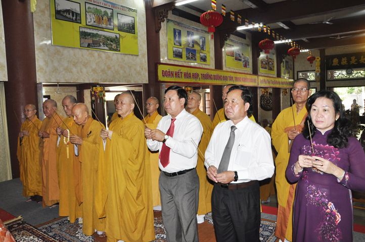 Chứng minh tham dự buổi lễ có HT. Thích Huệ Hồng- Chứng minh Ban trị sự GHPGVN tỉnh Long An; HT. Thích Minh Thiện- Uỷ viên HĐTSTƯ, Phó ban Hoằng pháp trung ương, Trưởng Ban trị sự GHPGVN tỉnh Long An;TT. Thích Quảng Tâm- UVHĐTSTƯ, Phó thường trực Ban trị sự GHPGVN tỉnh Long An; ĐĐ. Thích Lệ Trí – UVHĐTS, Phó Ban trị sự GHPGVN tỉnh Long An; ĐĐ. Thích Đức Hoàng- Phó BTS GHPGVN tỉnh Long An; ĐĐ. Thích Lệ Duyên- Chánh thư ký BTS. GHPGVN tỉnh Long An; HT. Thích Quảng Ý- Trưởng BTS GHPGVN liên huyện Tân Thạnh – Mộc Hoá – Kiến Tường- Vĩnh Hưng; HT. Thích Bửu Ứng- Trưởng Ban trị sự GHPGVN huyện Cần Đước; cùng Chư tôn đức Tăng Ni trong thường trực Ban trị sự tỉnh, huyện về tham dự.