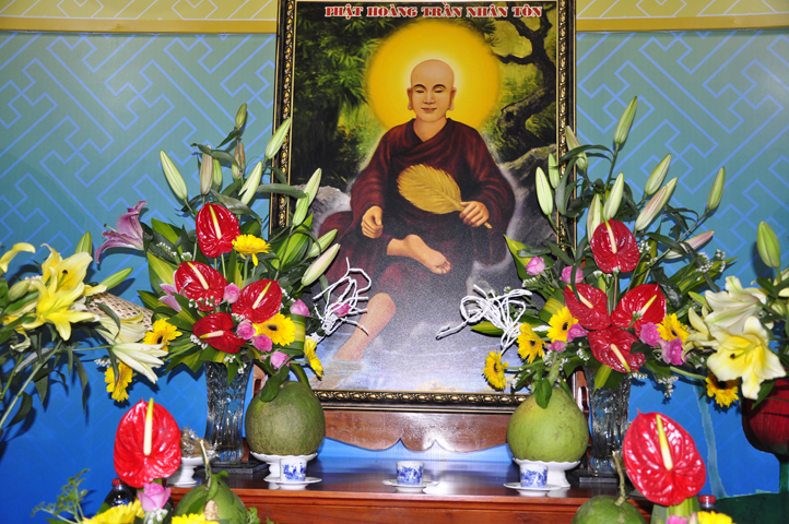 Tiếp theo đó, TT. Thích Quảng Tâm- Phó thường trực Ban trị sự BTS. GHPGVN tỉnh cung tuyên tiểu sử Đức vua – Phật hoàng Trần Nhân Tông. Theo đó, Đức vua – Phật Hoàng Trần Nhân Tông. Ngài tên húy là Trần Khâm, sinh ngày 07/12/1258 (11/11/Mậu Ngọ), là con trưởng của Vua Trần Thánh Tông và Hoàng Thái hậu Nguyên Thánh. Năm 16 tuổi (1274), Ngài được lập làm Đông cung Thái tử và cùng năm Ngài kết duyên cùng công chúa Quyên Thánh, trưởng nữ Hưng Đạo Đại Vương. Năm 21 tuổi (1279), Ngài được Trần Thánh Tông truyền ngôi, trị vì thiên hạ Đại Việt, lấy đức trị vì, dân chúng an cư lạc nghiệp, lấy niên hiệu là Thiệu Bảo. Sau khi chinh phạt Ai Lao, Ngài trở về Hành cung Vũ Lâm – Ninh Bình, cầu Quốc sư Huệ Tuệ làm lễ Xuất gia, tập sự tu hành tại đây một thời gian. Năm 1299, Ngài quyết tâm trở lại thăm Kinh sư lần cuối, rồi đi thẳng lên núi Yên Tử – Quảng Ninnh quyết chí tu hành, tham thiền nhập định, lấy tên là “Hương Vân Đại Đầu Đà” và độ Đồng Kiên Cương làm đệ tử và ban pháp hiệu là Pháp Loa. Ngài xả báo an tường, thâu thần thị tịch ngày 01/11/Mậu Thân (1308). Thọ thế 51 năm tại am Ngọa Vân – Đông Triều – Quảng Ninh.