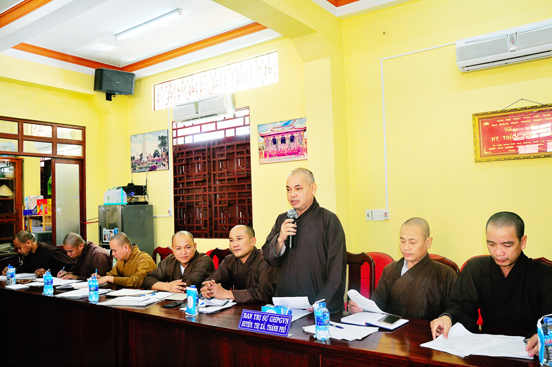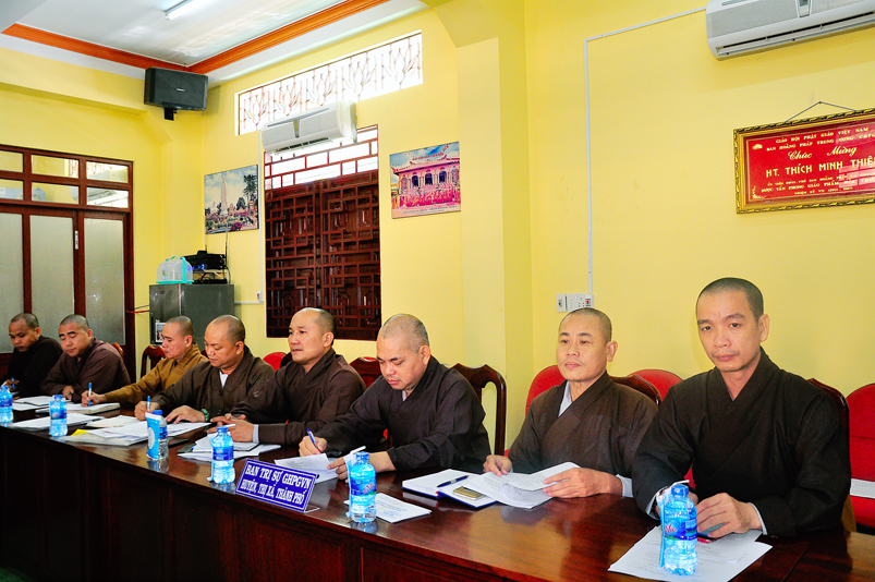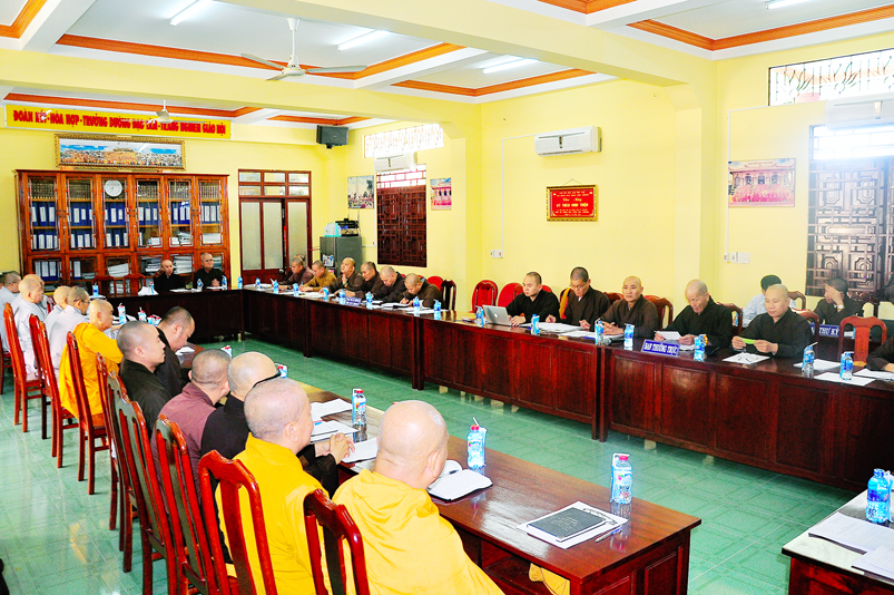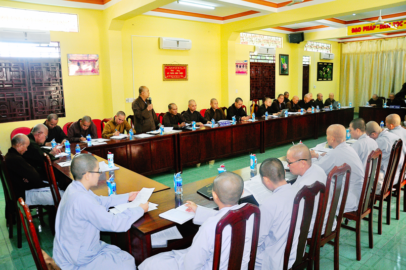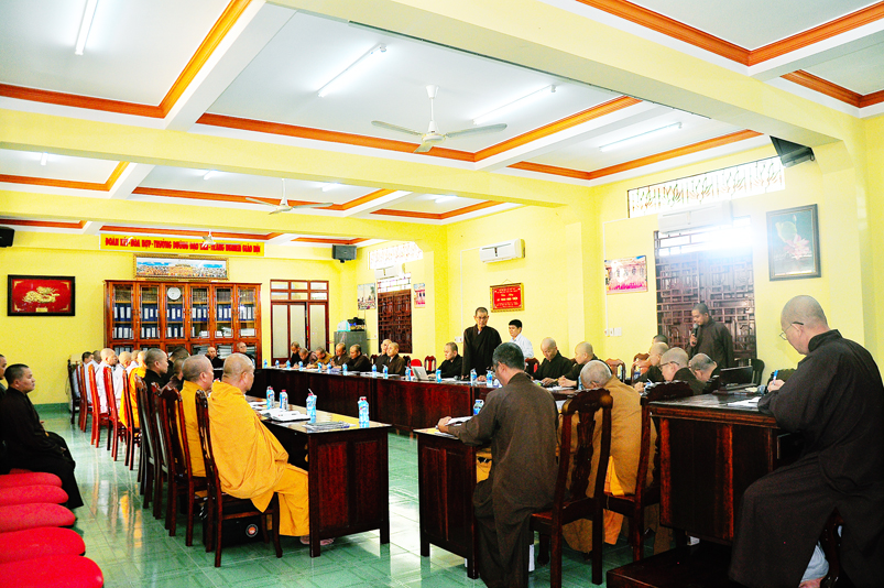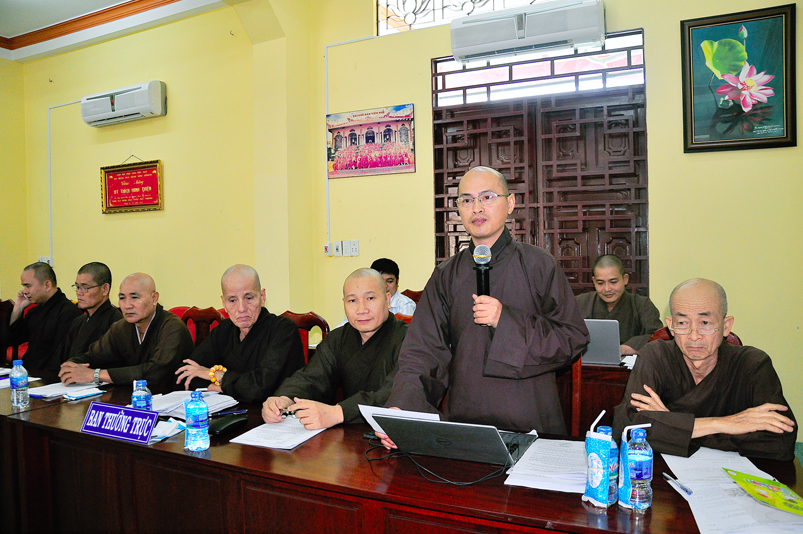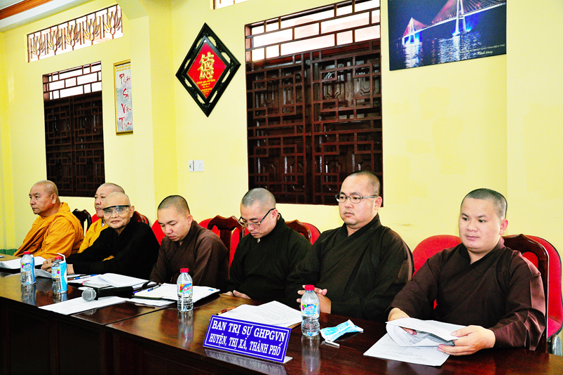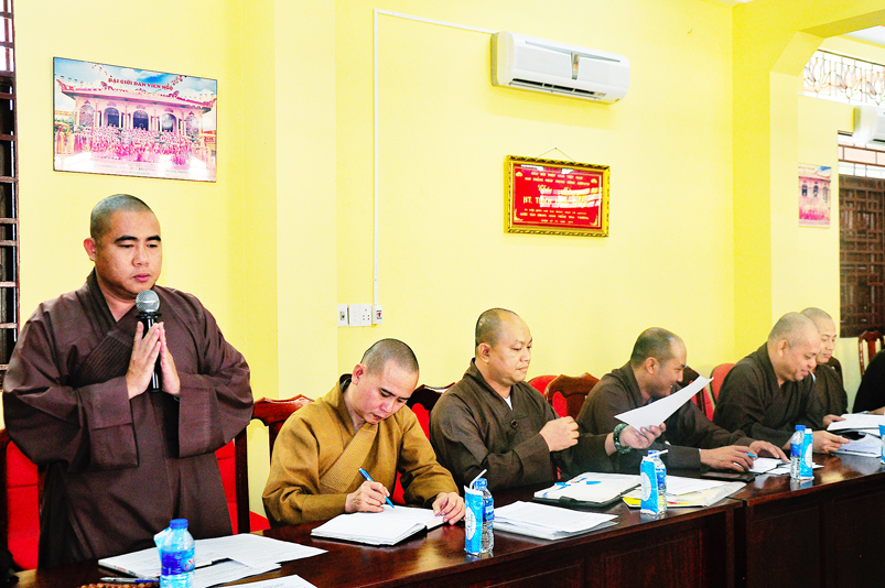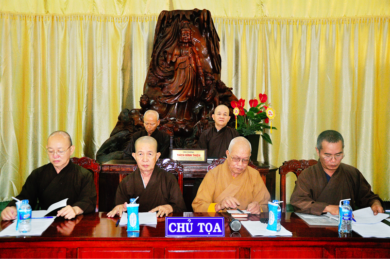 Nội dung buổi họp: Báo cáo tổng kết các hoạt động Phật sự của tỉnh trong tháng qua và hướng hoạt động Phật sự cho những tháng tới, đặc biệt về Phật đản, An cư Kiết hạ, khóa tu mùa hè cho thanh thiếu niên Phật tử và việc trao đổi về những bất ổn gọi là “Thiền tông Tân Diệu” với chùa Tân Diệu (địa chỉ 273 ấp Chánh Hội, xã Tân Mỹ, huyện Đức Hòa, tỉnh Long An)