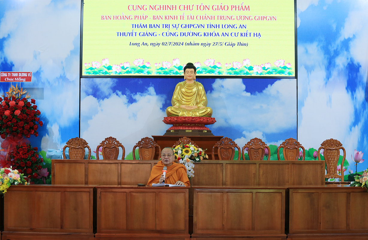 Thượng tọa cho biết, Ban Trị sự GHPGVN tỉnh Long An được thành lập vào năm 1983. Với tinh thần đoàn kết, hòa hợp, trải qua 41 năm hoạt động, Phật giáo tỉnh Long An từng bước ổn định, phát triển. Hiện nay, toàn tỉnh có 1.586 Tăng Ni, 319 cơ sở tự viện, 23 điểm sinh hoạt tôn giáo tập trung; tổ chức thành công 14 Đại giới đàn, 23 Khóa bồi dưỡng trụ trì và hành chính Giáo hội; đào tạo 1.000 Tăng Ni sinh tốt nghiệp Trung cấp Phật học, hơn 500 Tăng Ni tốt nghiệp Sơ cấp Phật học.