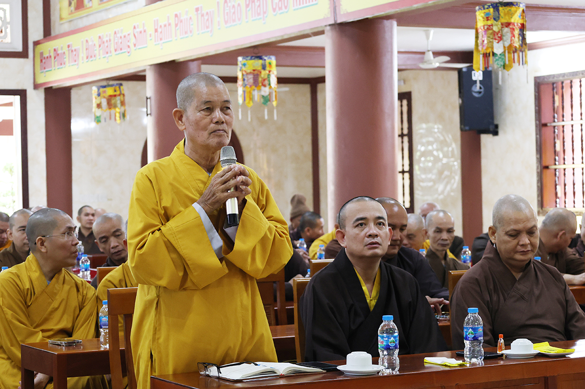 Phiên họp được lắng nghe nhiều ý kiến đóng góp từ: Thượng tọa Thích Lệ Trí, Thượng tọa Thích Minh Thọ, Thượng tọa Thích Lệ Tấn, Đại đức Thích Lệ Ngôn, Đại đức Thích Minh Trí, Đại đức Thích Trí Minh,…