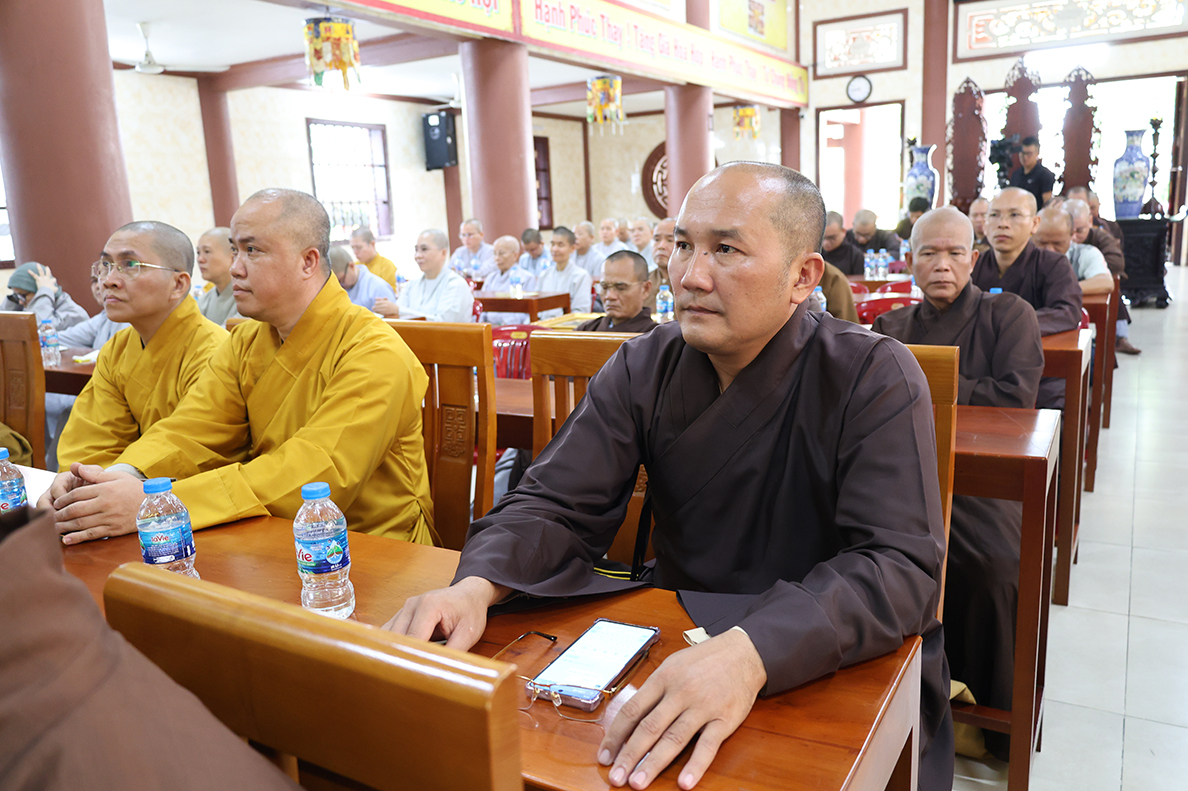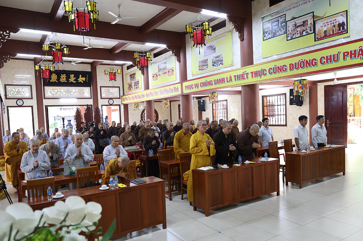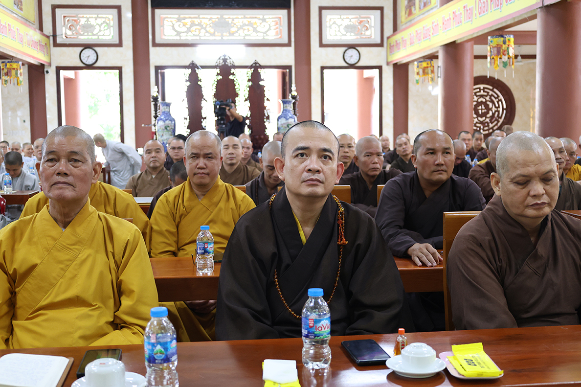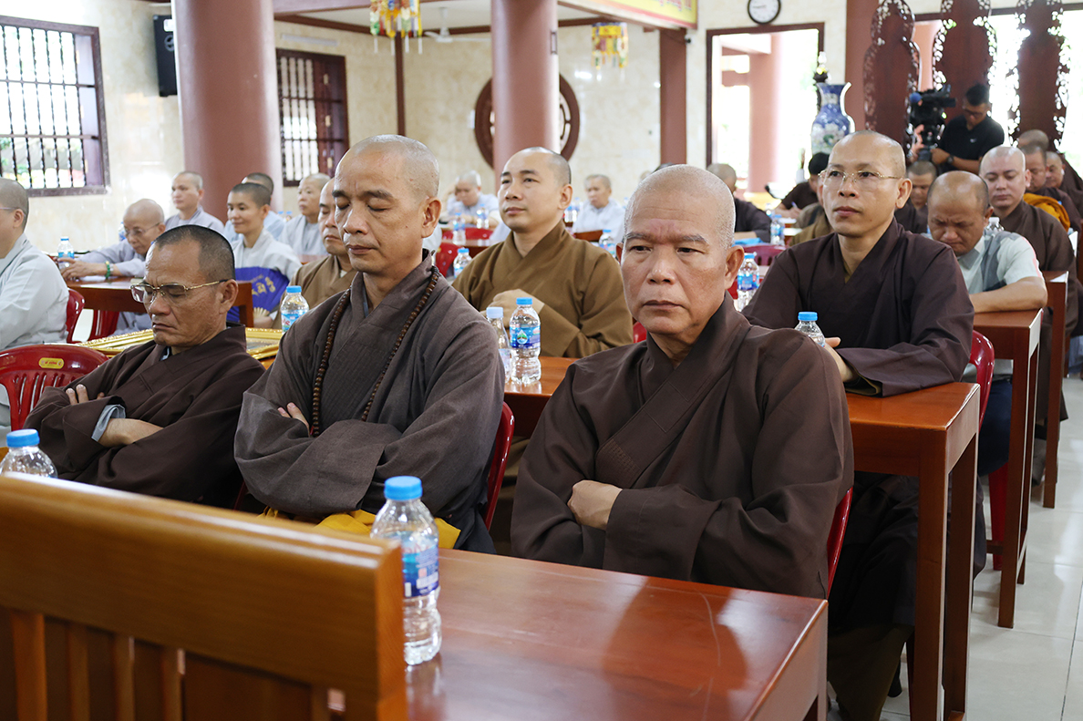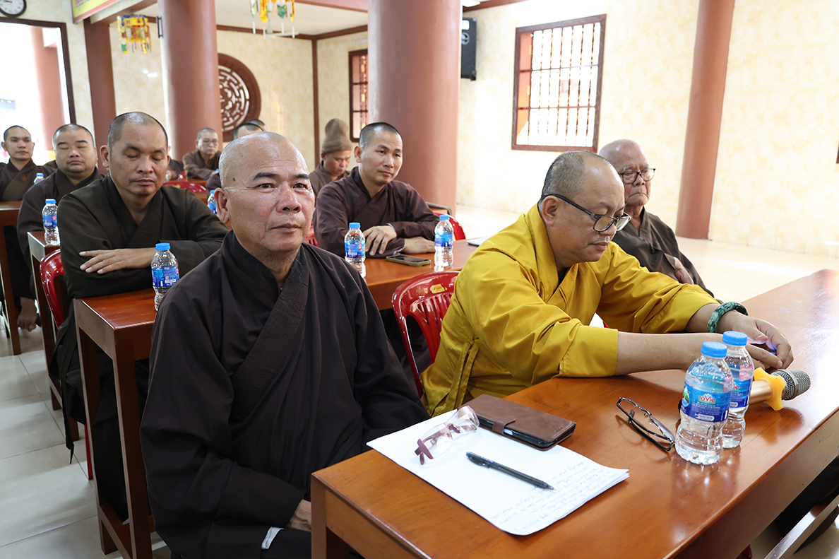 Quang lâm chứng minh và tham dự phiên họp có: TLHT. Thích Thiện Huệ – Thành viên HĐCM, Chứng minh BTS GHPGVN tỉnh; HT. Thích Thiện Tài, HT. Thích Quảng Ý – Đồng Chứng minh BTS GHPGVN tỉnh; HT. Thích Minh Thiện – UV HĐTS, Phó ban Hoằng pháp TƯ, Trưởng BTS GHPGVN tỉnh Long An, chủ tọa phiên họp; TT. Thích Quảng Tâm – UV HĐTS, Phó Trưởng Ban Thường trực BTS GHPGVN tỉnh; TT. Thích Lệ Trí – UV HĐTS, Phó BTS kiêm Trưởng ban GDPG GHPGVN tỉnh; TT. Thích Minh Thọ – UV HĐTS, Phó BTS kiêm Trưởng Ban Pháp chế GHPGVN tỉnh; HT. Thích Tắc Phi – Phó BTS kiêm Trưởng ban Kiểm soát GHPGVN tỉnh; ĐĐ. Thích Lệ Duyên – Phó ban kiêm Chánh Thư ký BTS GHPGVN tỉnh; Chư Tôn đức Ban Thường trực BTS GHPGVN tỉnh, Chư Tôn đức đại diện các ban chuyên ngành GHPGVN tỉnh, Chư Tôn đức đại diện BTS 13 huyện, thị xã, thành phố, Chư Tôn đức đại diện Ban Chức sự 13 Trú xứ An cư Kiết hạ đồng về tham dự.