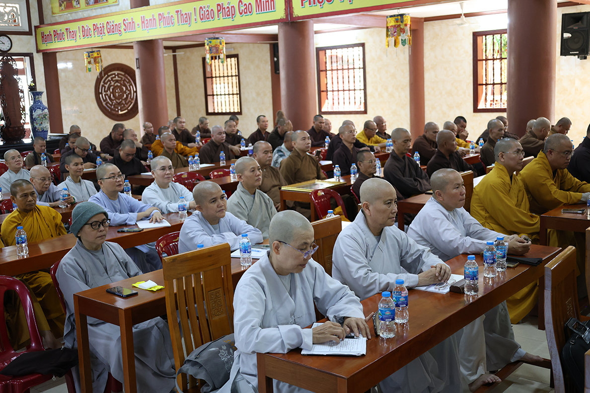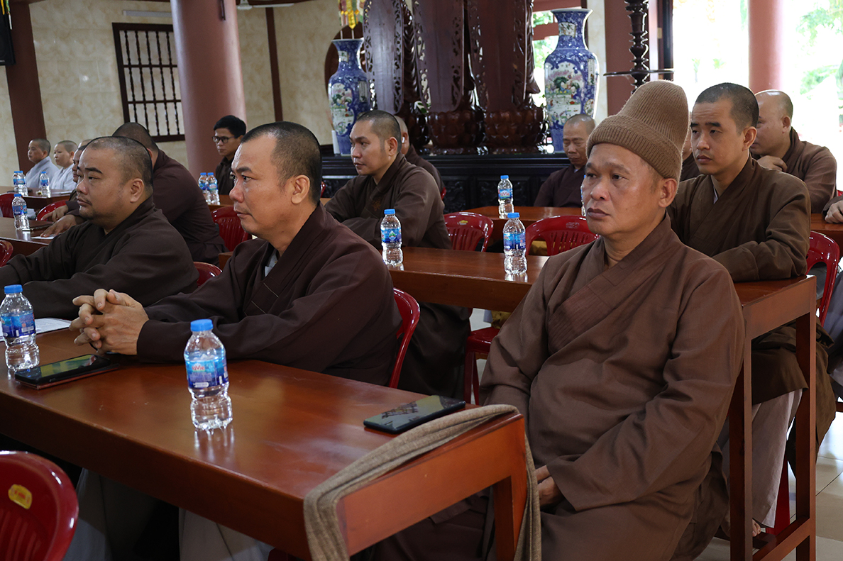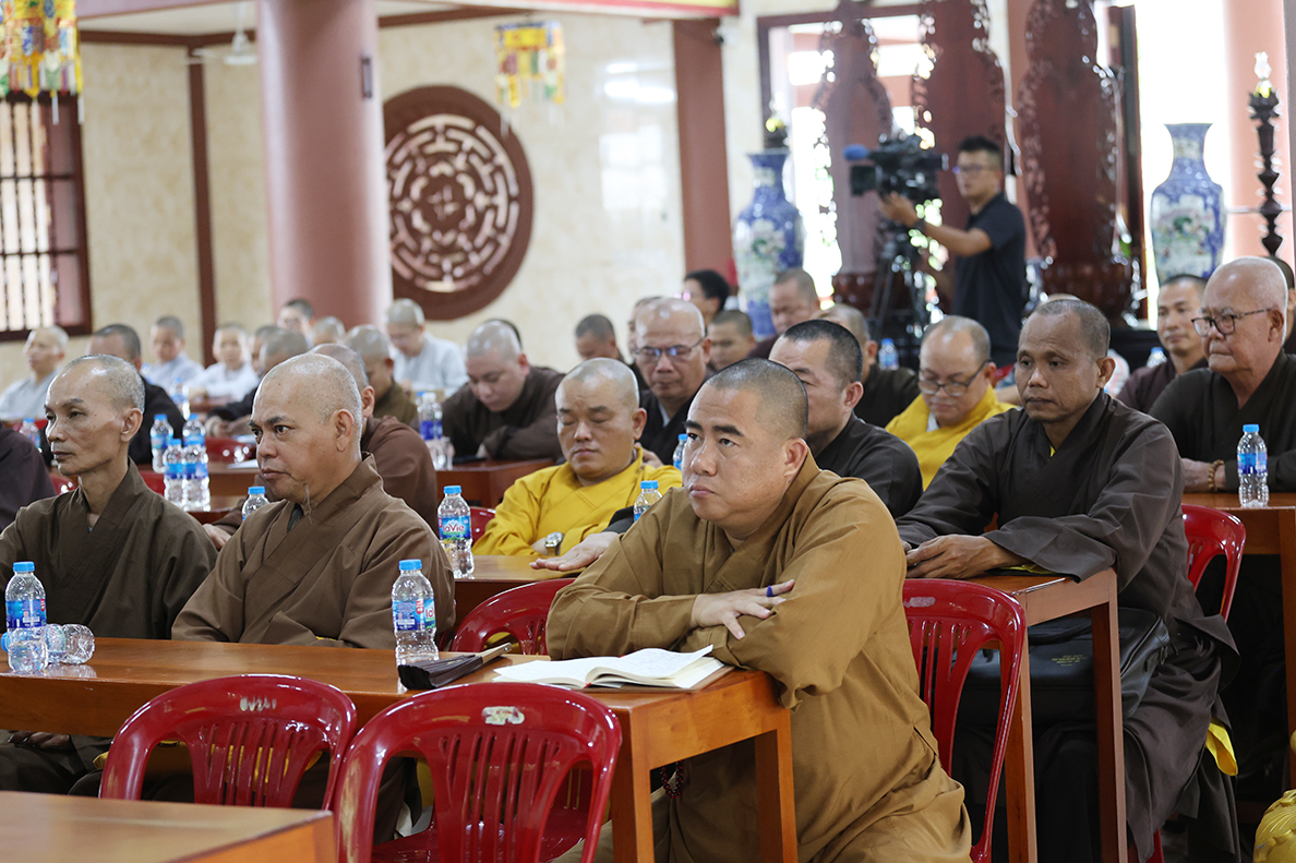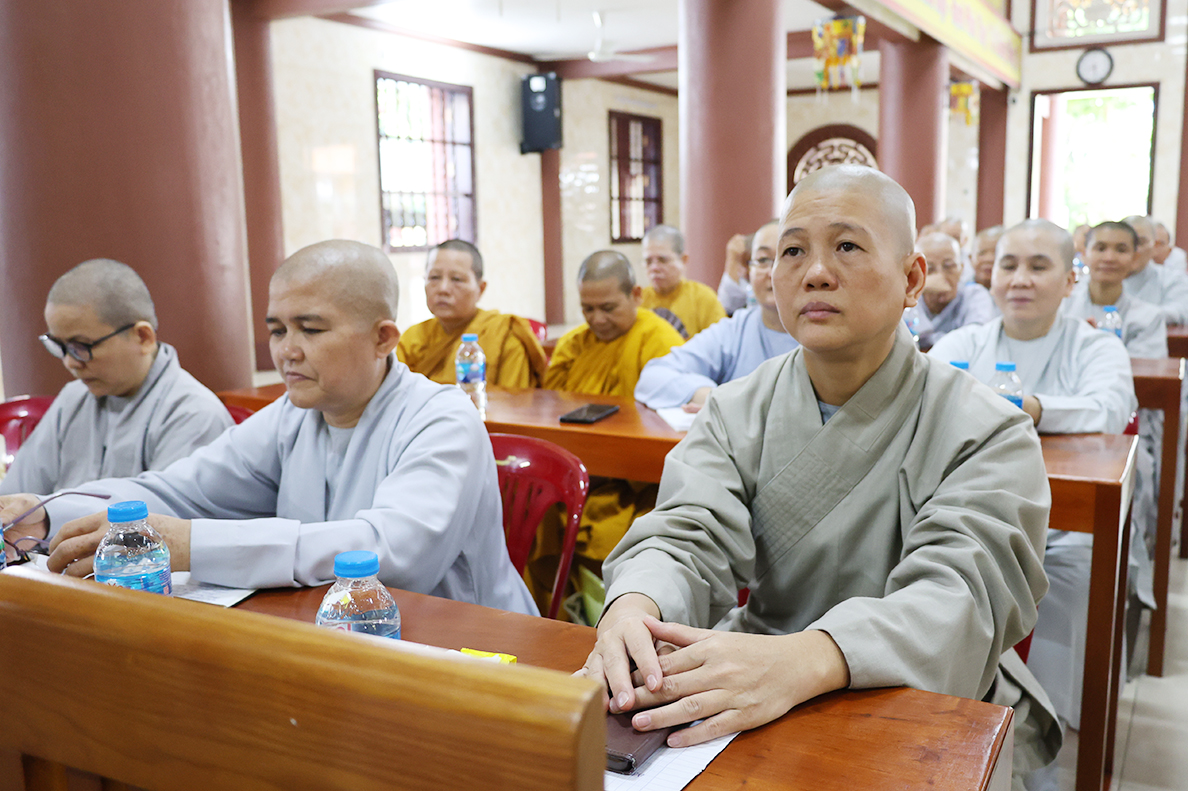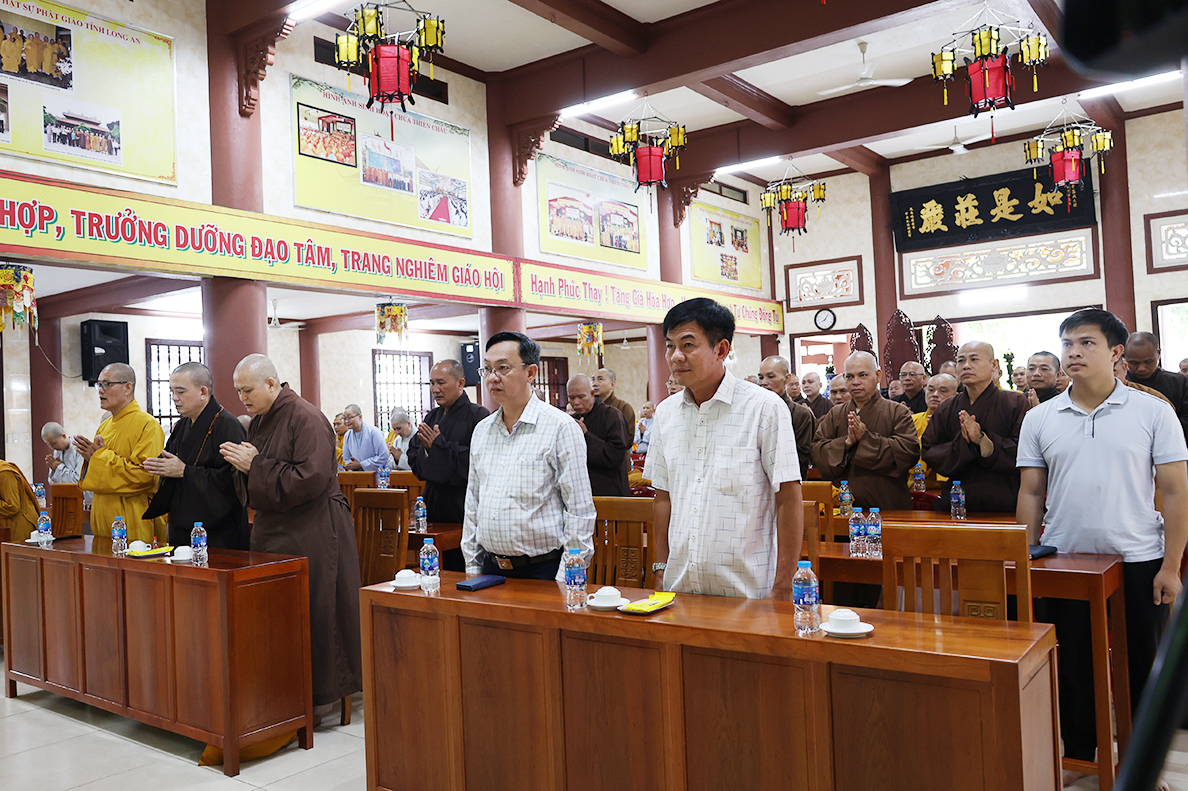 Quang lâm chứng minh và tham dự phiên họp có: TLHT. Thích Thiện Huệ – Thành viên HĐCM, Chứng minh BTS GHPGVN tỉnh; HT. Thích Thiện Tài, HT. Thích Quảng Ý – Đồng Chứng minh BTS GHPGVN tỉnh; HT. Thích Minh Thiện – UV HĐTS, Phó ban Hoằng pháp TƯ, Trưởng BTS GHPGVN tỉnh Long An, chủ tọa phiên họp; TT. Thích Quảng Tâm – UV HĐTS, Phó Trưởng Ban Thường trực BTS GHPGVN tỉnh; TT. Thích Lệ Trí – UV HĐTS, Phó BTS kiêm Trưởng ban GDPG GHPGVN tỉnh; TT. Thích Minh Thọ – UV HĐTS, Phó BTS kiêm Trưởng Ban Pháp chế GHPGVN tỉnh; HT. Thích Tắc Phi – Phó BTS kiêm Trưởng ban Kiểm soát GHPGVN tỉnh; ĐĐ. Thích Lệ Duyên – Phó ban kiêm Chánh Thư ký BTS GHPGVN tỉnh; Chư Tôn đức Ban Thường trực BTS GHPGVN tỉnh, Chư Tôn đức đại diện các ban chuyên ngành GHPGVN tỉnh, Chư Tôn đức đại diện BTS 13 huyện, thị xã, thành phố, Chư Tôn đức đại diện Ban Chức sự 13 Trú xứ An cư Kiết hạ đồng về tham dự.