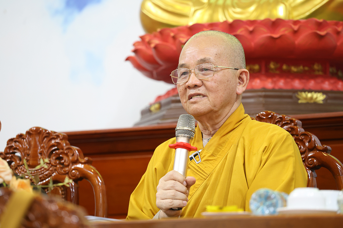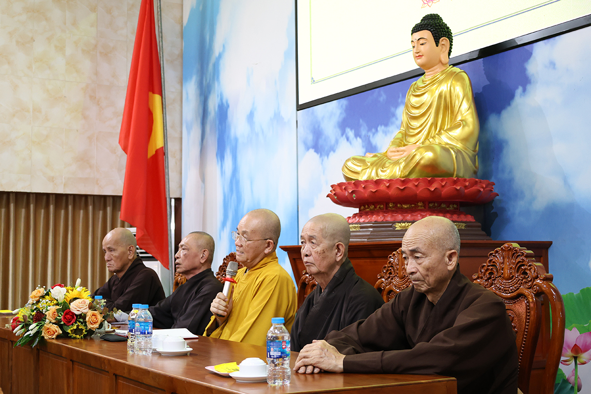 Ban lời đạo từ tại phiên họp, TLHT. Thích Thiện Huệ – Chứng minh BTS GHPGVN tỉnh Long An tán thán những thành tựu hoạt động Phật sự 6 tháng đầu năm 2025 cũng như ghi nhận các ý kiến phát biểu của Chư Tôn đức trước tình hình sáp nhập hai tỉnh Long An và Tây Ninh. Trước khi BTS GHPGVN cấp huyện dừng hoạt động, tiến tới thành lập BTS GHPGVN tỉnh Tây Ninh mới, Hòa thượng tri ân Chư Tôn đức đã tận tụy đóng góp, cống hiến làm xiển dương Phật giáo, đem tinh thần từ bi của đạo Phật lan tỏa khắp lòng dân tộc. Hòa thượng cũng đã hoan hỷ và nhất trí với những phát biểu chỉ đạo của Hòa thượng Trưởng BTS. Sau cùng, Hòa thượng hy vọng dù trên cương vị hay địa bàn công tác nào, Chư Tôn đức vẫn sẽ giữ vững đạo tâm, tinh thần trách nhiệm cao cả, phụng sự chúng sinh, góp phần xây dựng Giáo hội ngày càng trang nghiêm, vững mạnh.