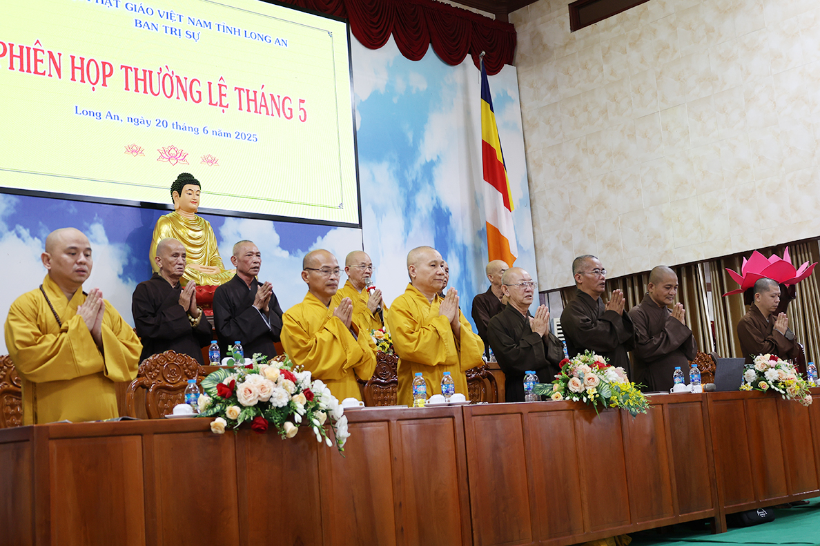 Sáng ngày 20/6/2025 (nhằm ngày 25 tháng 5 năm Ất Tỵ), tại Văn phòng Ban Trị sự GHPGVN tỉnh Long An – Chùa Thiên Châu, số 101 Huỳnh Văn Nhứt, phường 3, thành phố Tân An, tỉnh Long An, đã diễn ra phiên họp lệ nhằm tổng kết hoạt động Phật sự 6 tháng đầu năm và triển khai phương hướng hoạt động Phật sự trong thời gian tới.