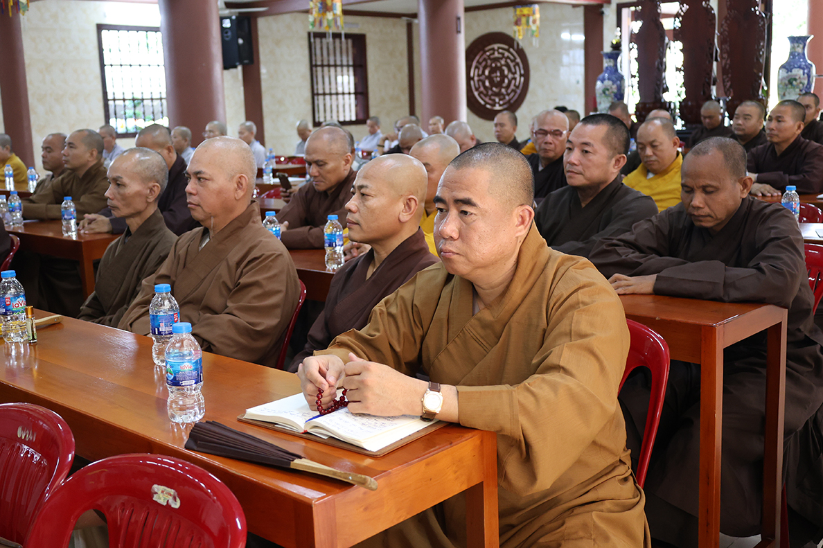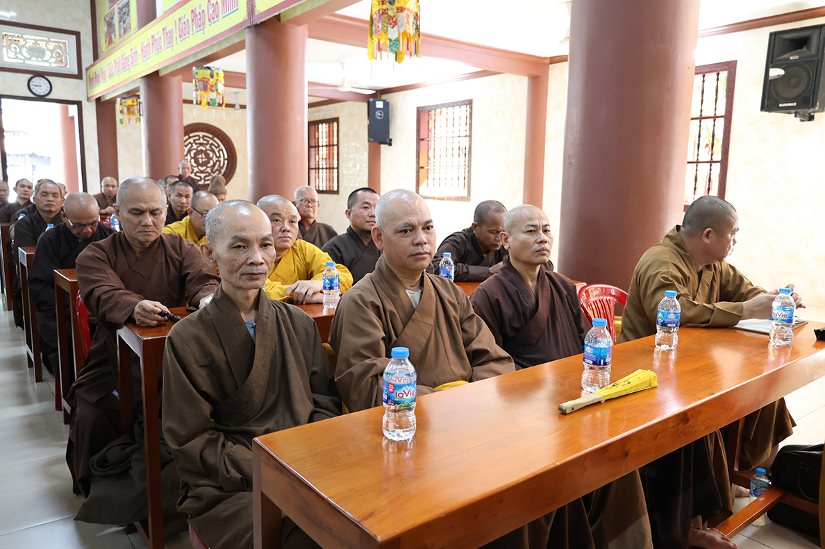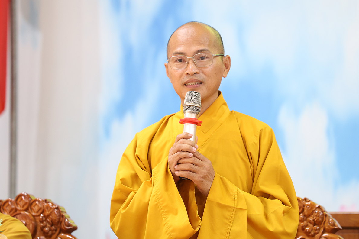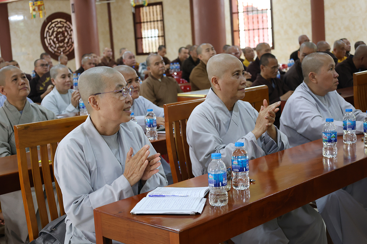 Thay mặt BTS GHPGVN tỉnh, Hòa thượng Thích Minh Thiện tri ân lời đạo từ chỉ đạo của TLHT. Thích Thiện Huệ – Chứng minh BTS GHPGVN tỉnh. Tập thể Chư Tôn đức trên chặng đường mới sẽ tiếp tục đoàn kết, hòa hợp, tăng cường đạo lực, trưởng dưỡng đạo tâm, trang nghiêm Giáo hội, góp phần xây dựng và phát triển Đạo pháp, Dân tộc, Chủ nghĩa xã hội.