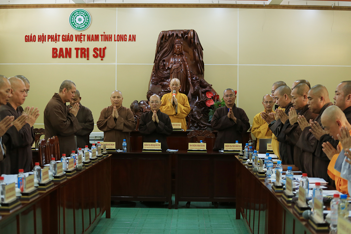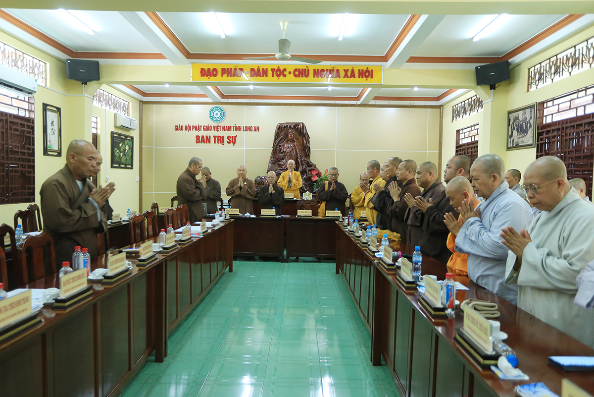 Sáng ngày 03/5/2024 (nhằm ngày 25/03/Giáp Thìn), Ban Thường trực BTS GHPGVN tỉnh Long An tổ chức phiên họp định kỳ nhằm tổng kết Phật sự tháng 3 và triển khai phương hướng hoạt động tháng 4 năm Giáp Thìn tại Văn phòng BTS GHPGVN tỉnh, chùa Thiên Châu. Phiên họp dưới sự chủ trì của Hòa thượng Thích Minh Thiện – UV HĐTS, Phó Trưởng ban Hoằng pháp TW, Trưởng BTS GHPGVN tỉnh Long An.