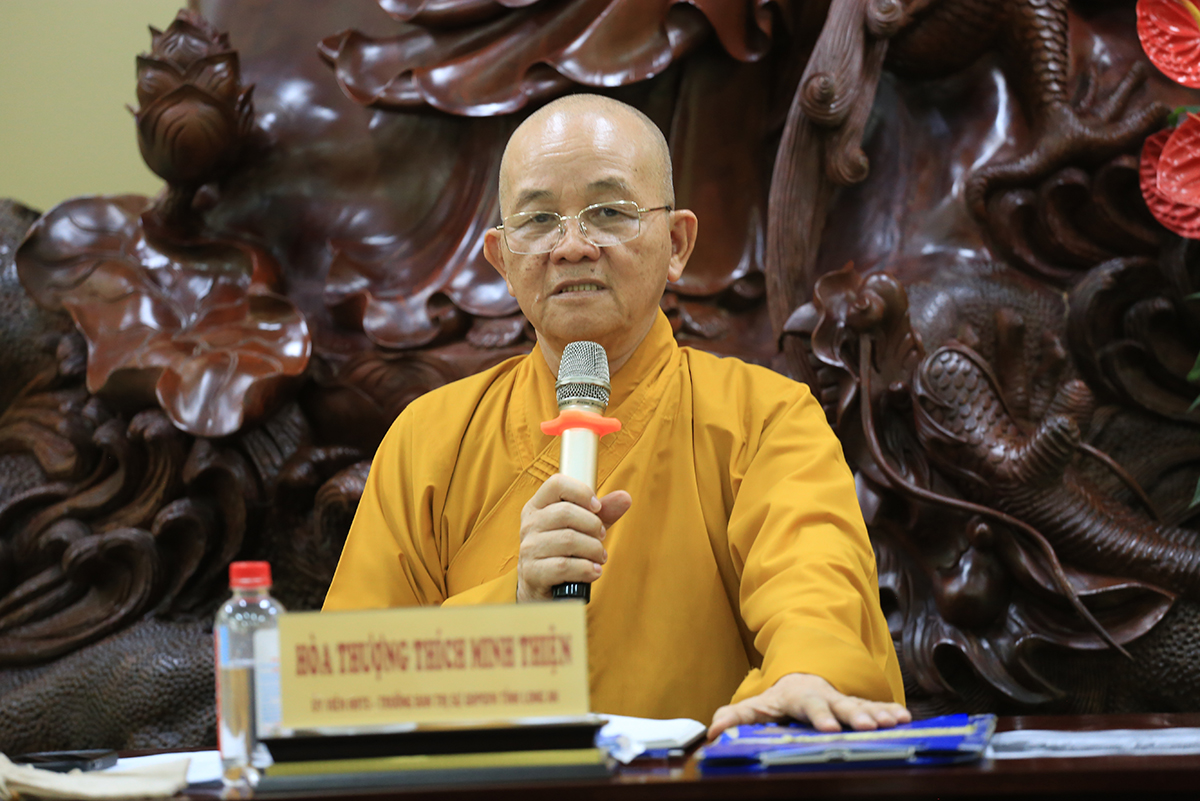 Phát biểu chỉ đạo tại phiên họp, Hòa thượng Thích Minh Thiện đã có những giải trình liên quan đến những ý kiến phát biểu của Chư tôn đức. Hòa thượng lưu tâm một số vấn đề pháp lý, thủ tục hành chính liên quan đến khóa An cư kiết hạ. Cuối cùng, Hòa thượng chỉ đạo một số công tác liên quan đến Lễ tưởng niệm tại Đồn Long Khốt.