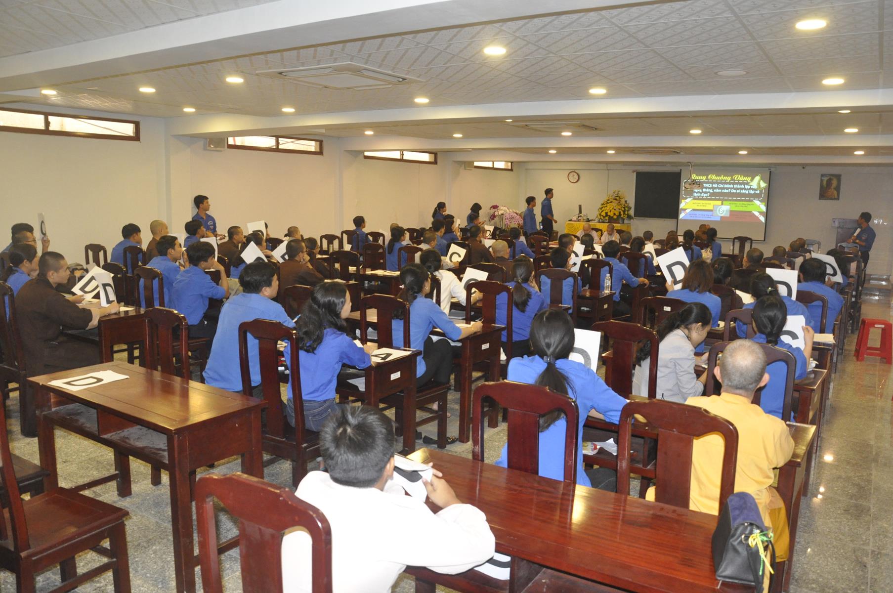 Mục đích của buổi giao lưu này nhằm tạo điều kiện cho thanh thiếu niên trên địa bàn huyện Đức Hòa giao lưu với Tăng Ni sinh Sơ cấp Phật học Long An, học tập trao đổi văn hóa, nâng cao kiến thức, quán triệt các chủ trương, chính sách của Đảng, Pháp luật Nhà nước về tín ngưỡng, tôn giáo; đồng thời phát huy vai trò của thanh niên tôn giáo trong việc tham gia đảm bảo an ninh chính trị, trật tự an toàn xã hội, góp phần tích cực xây dựng khối đại đoàn kết toàn dân tộc. Trọng tâm của buổi giao lưu gồm có các phần sau: thi Rung chuông vàng; thi xây tháp giấy, thi viết chữ Thư pháp, thi làm bản đồ Việt Nam và sau cùng là tổng kết phát thưởng cho những đội xuất sắc.