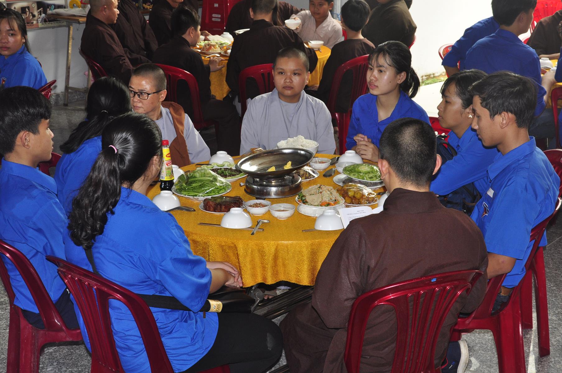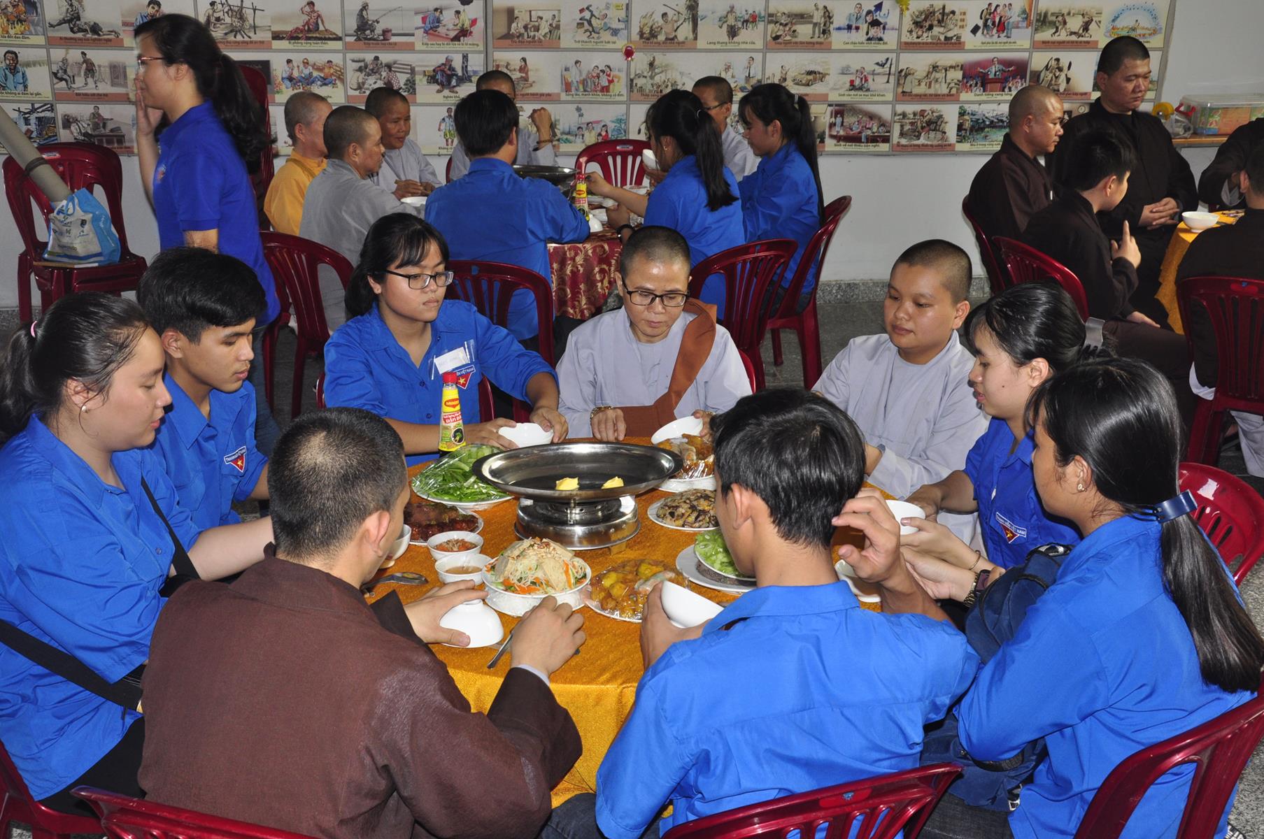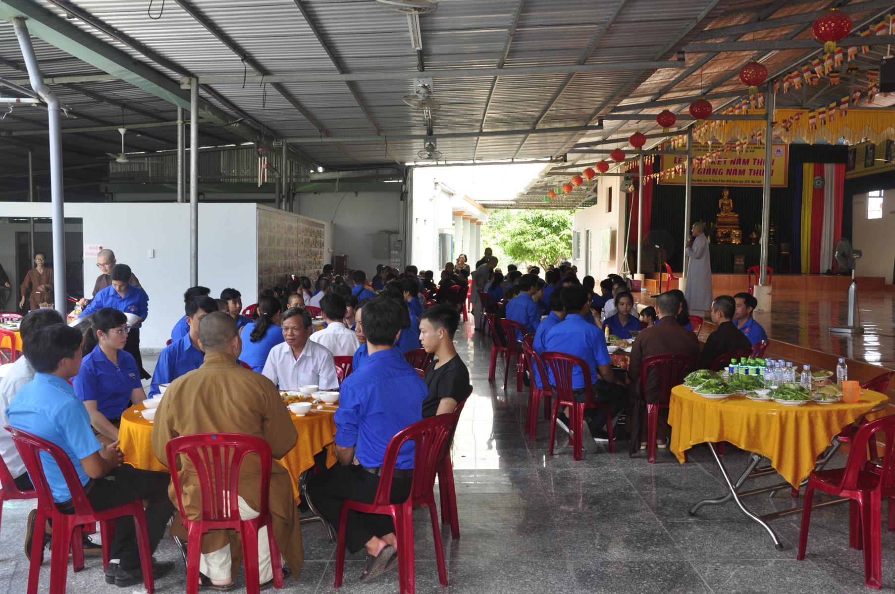 Buổi giao lưu có sự hiện diện của ĐĐ Thích Lệ Duyên: Chánh Thư ký Ban Trị sự GHPGVN tỉnh Long An, Chủ nhiệm Lớp Sơ cấp Phật học Long An; ĐĐ Thích Minh Trí: Thư ký BTS GHPGVN liên huyện Đức Hòa, Đức Huệ; SC TN Huệ Nghiêm: Phó Trưởng ban Hướng dẫn Phật tử GHPGVN tỉnh Long An; SC TN Trung Hiếu: Phó Trưởng ban Hướng dẫn Phật tử liên huyện Đức Hòa, Đức Huệ, cùng Tăng Ni sinh Sơ cấp Phật học Long An.