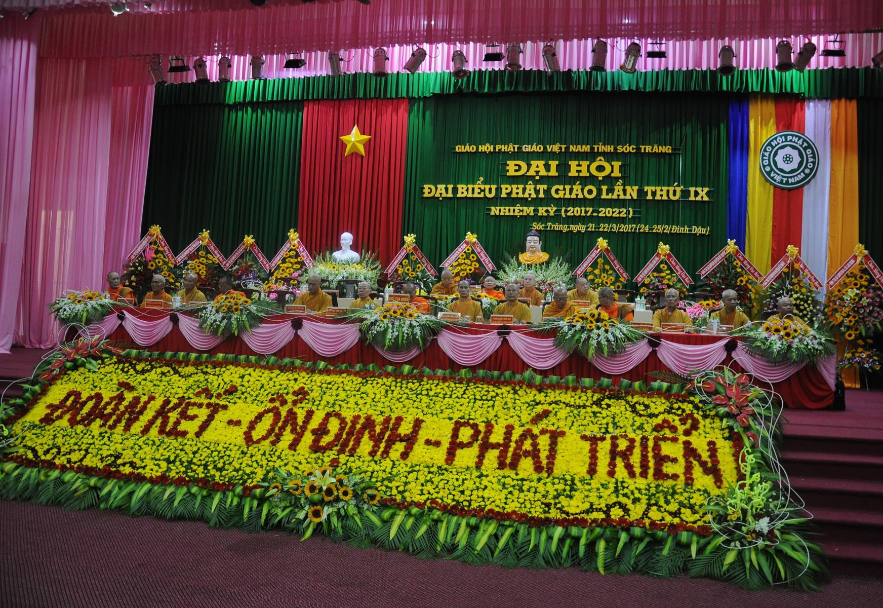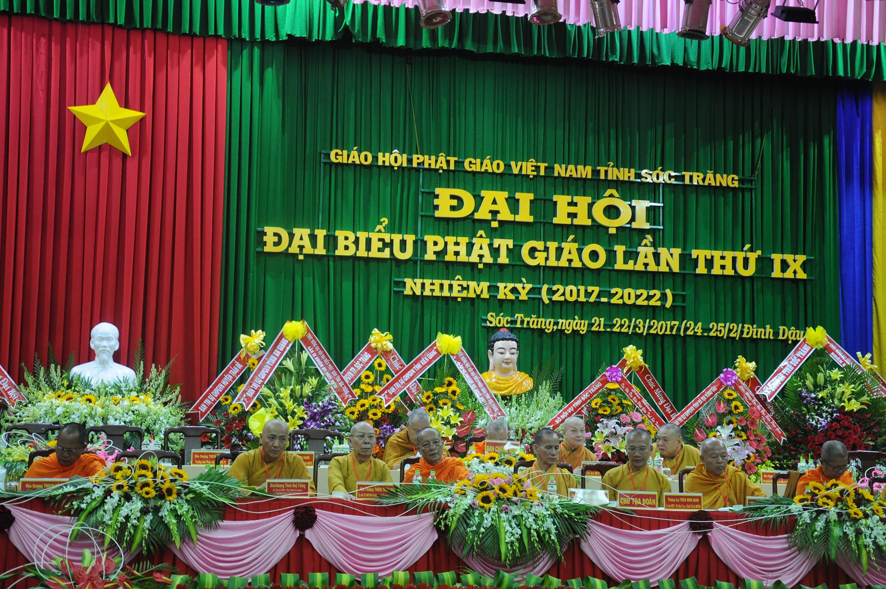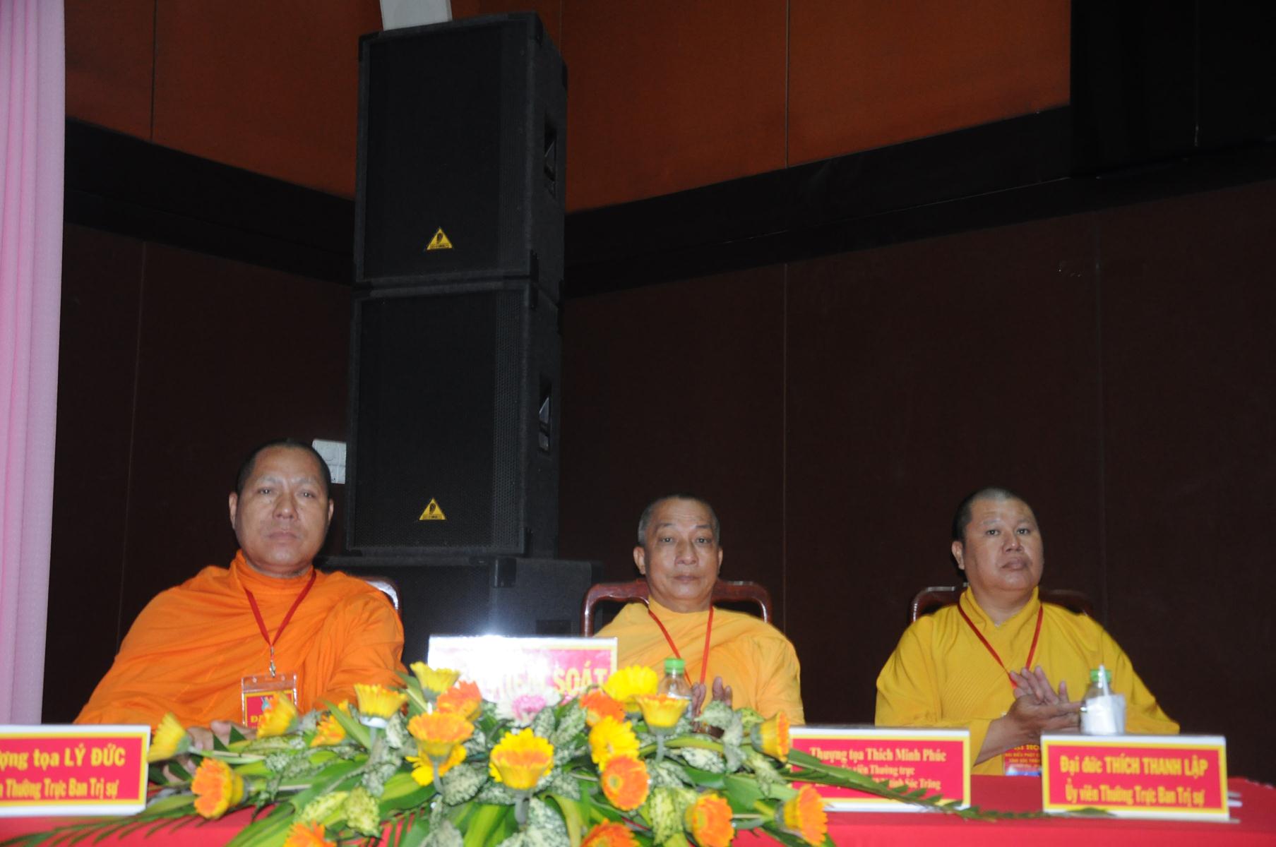 Chủ tọa đoàn có TT.Thích Thiện Thống, Phó Tổng thư ký HĐTS, Chánh văn phòng II T.Ư GHPGVN; HT.Thích Huệ Thông, Ủy viên thư ký HĐTS, Phó văn phòng II T.Ư GHPGVN; HT.Thích Thiện Đức, UVTT HĐTS; HT.Thích Trí Phát, HT.Thích Thiện Thành, HT.Tăng Nô, HT.Thích Minh Hồng, TT.Thích Thiện Thạnh, TT.Thích Minh Hạnh, TT.Thích Nhựt Quang – đồng Phó BTS Phật giáo tỉnh Sóc Trăng; HT.Dương Dal, Chứng minh Phật giáo tỉnh Sóc Trăng; HT.Trần Kiến Quốc, Ủy viên HĐTS, Phó BTS, Phó Thư ký Phật giáo tỉnh Sóc Trăng.