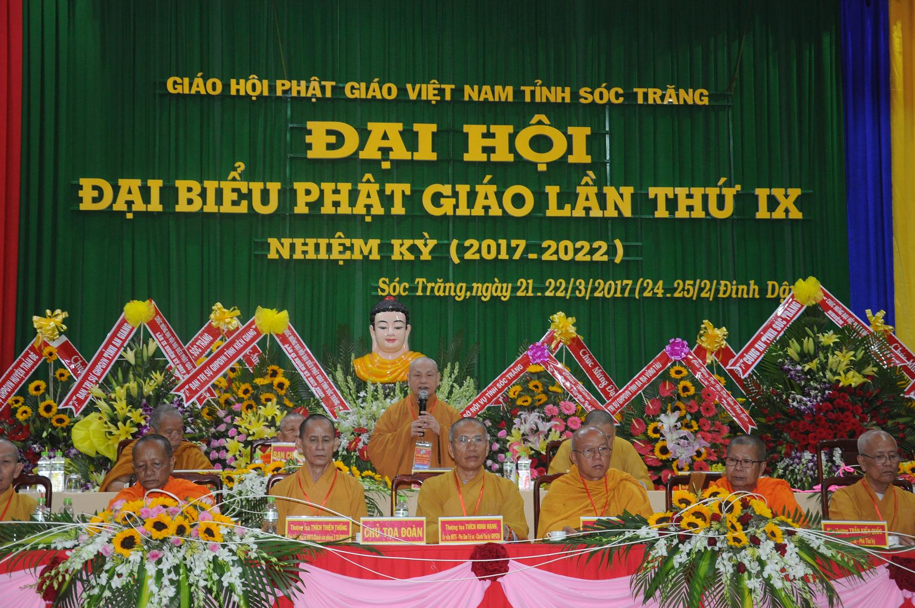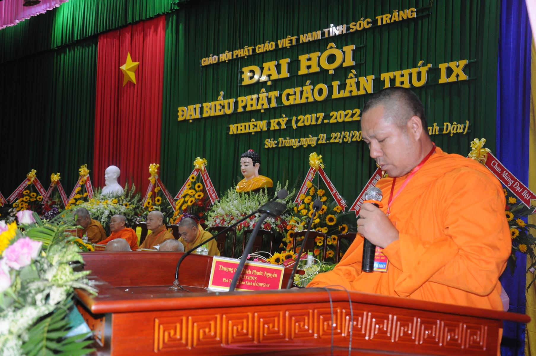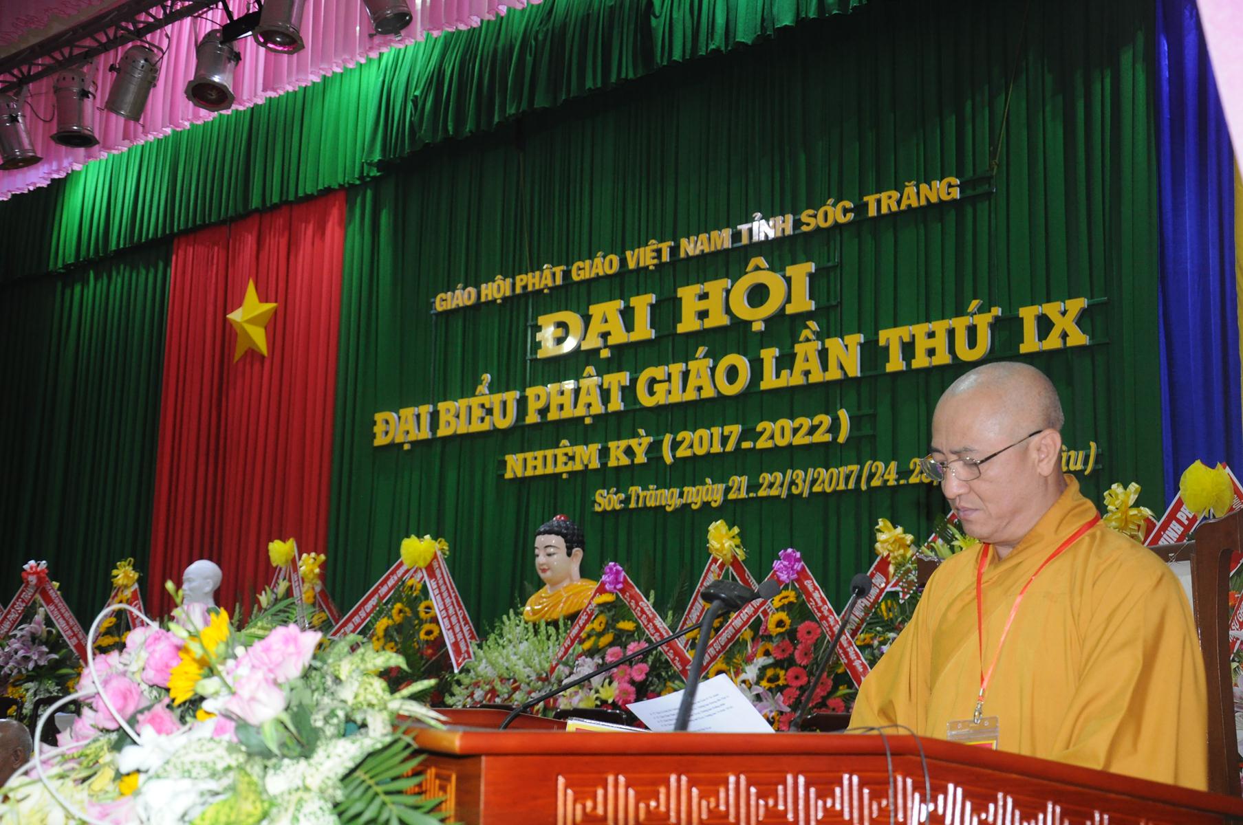 Trong tuyên bố lý do, giới thiệu chương trình và đại biểu tham dự, Đại đức nhấn mạnh, Đại hội Phật giáo tỉnh Sóc Trăng lần này là sự tuyên dương thành quả trong công tác Phật sự của Ban Trị sự GHPGVN tỉnh Sóc Trăng nhiệm kỳ VIII. Bên cạnh đó, tiếp nối thành tựu 5 năm qua để kế thừa và phát huy thế mạnh, khắc phục những khó khăn còn tồn đọng, đưa Phật giáo Sóc Trăng lên một tầm cao mới.