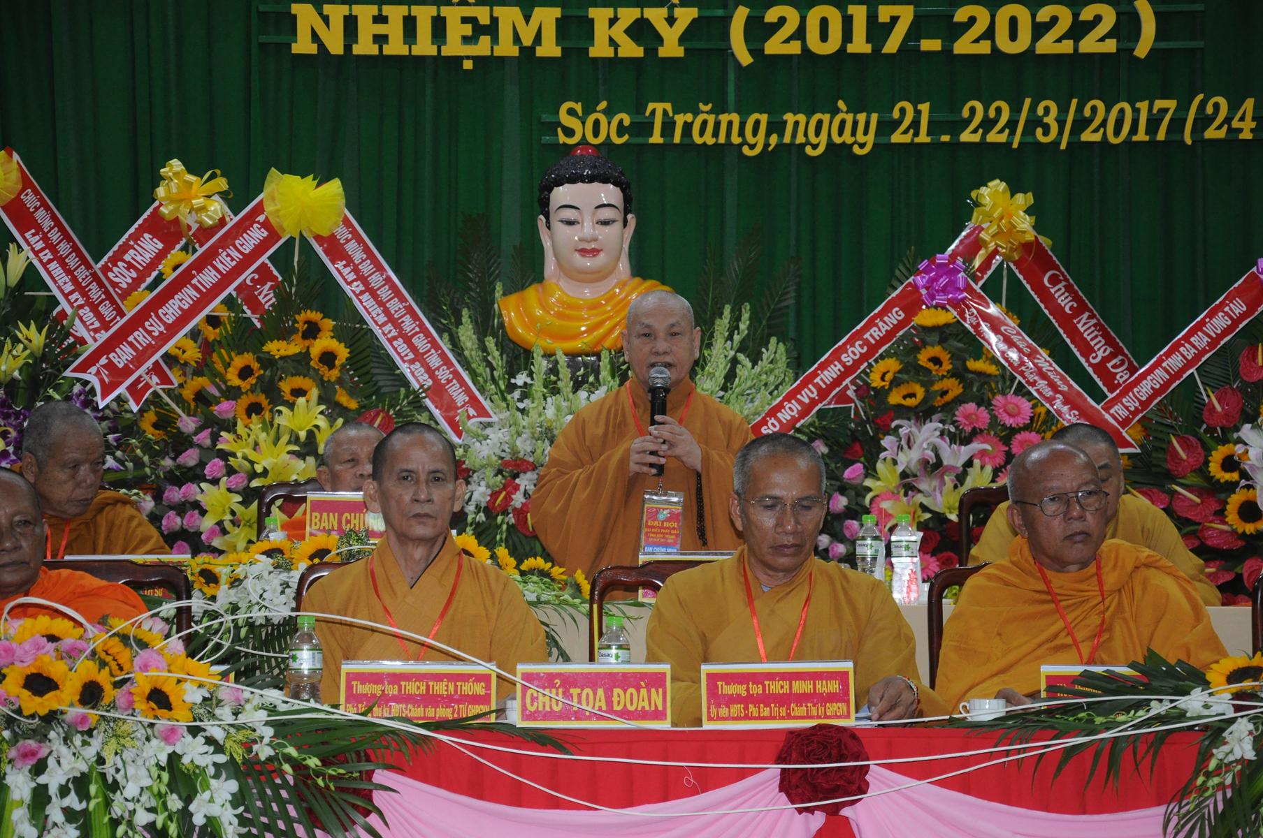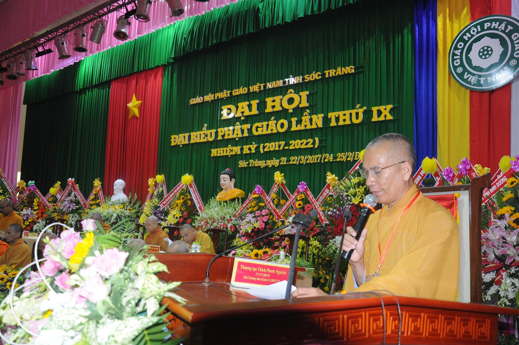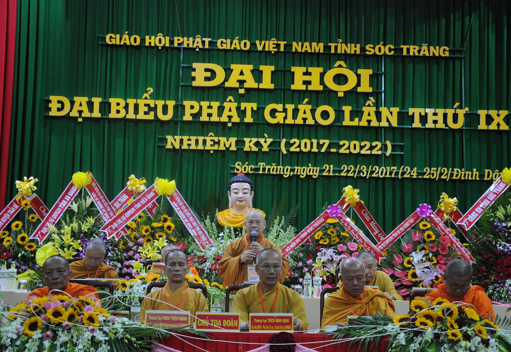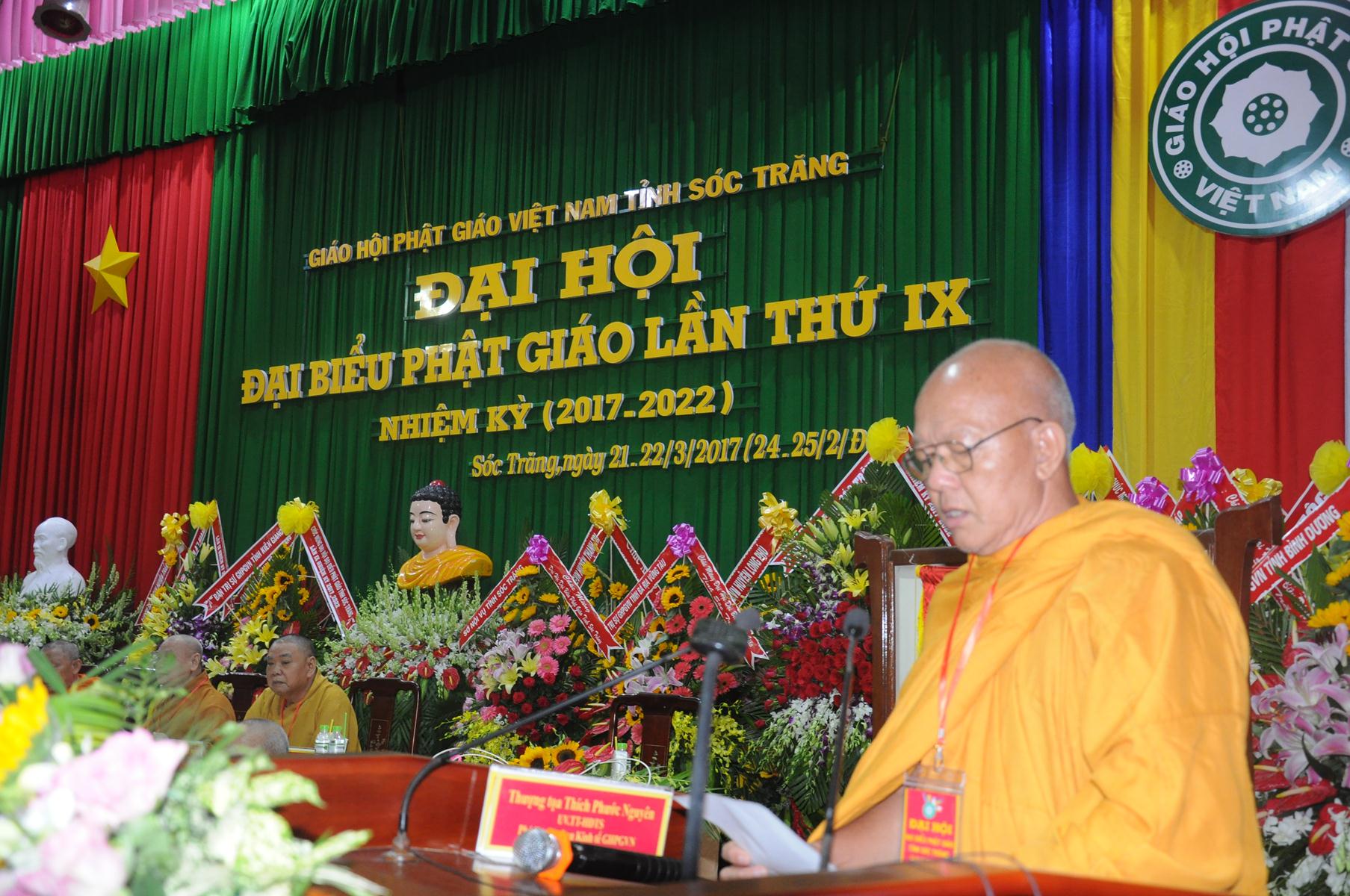 Trong tuyên bố lý do, giới thiệu chương trình và đại biểu tham dự, Đại đức nhấn mạnh, Đại hội Phật giáo tỉnh Sóc Trăng lần này là sự tuyên dương thành quả trong công tác Phật sự của Ban Trị sự GHPGVN tỉnh Sóc Trăng nhiệm kỳ VIII. Bên cạnh đó, tiếp nối thành tựu 5 năm qua để kế thừa và phát huy thế mạnh, khắc phục những khó khăn còn tồn đọng, đưa Phật giáo Sóc Trăng lên một tầm cao mới.