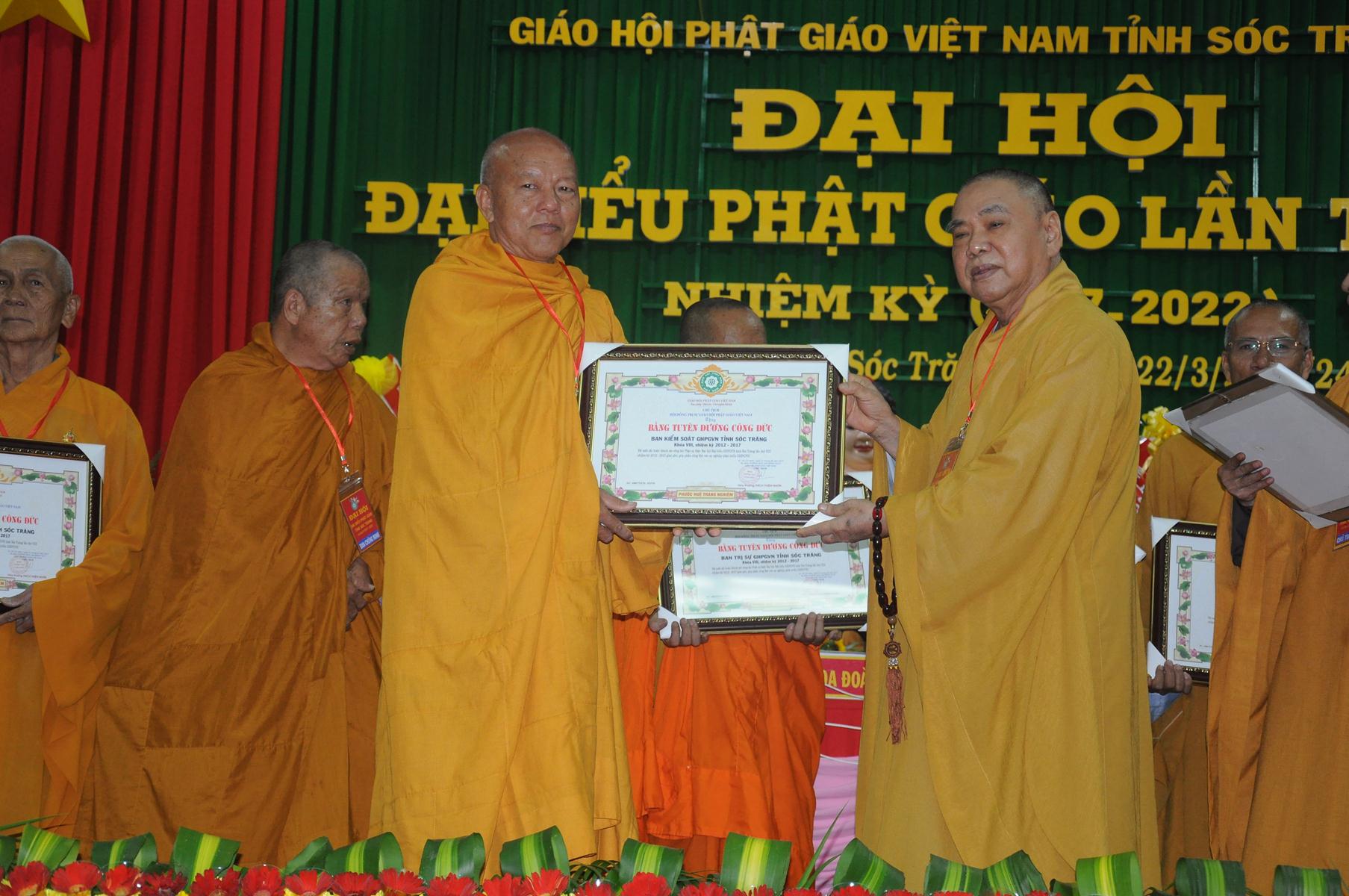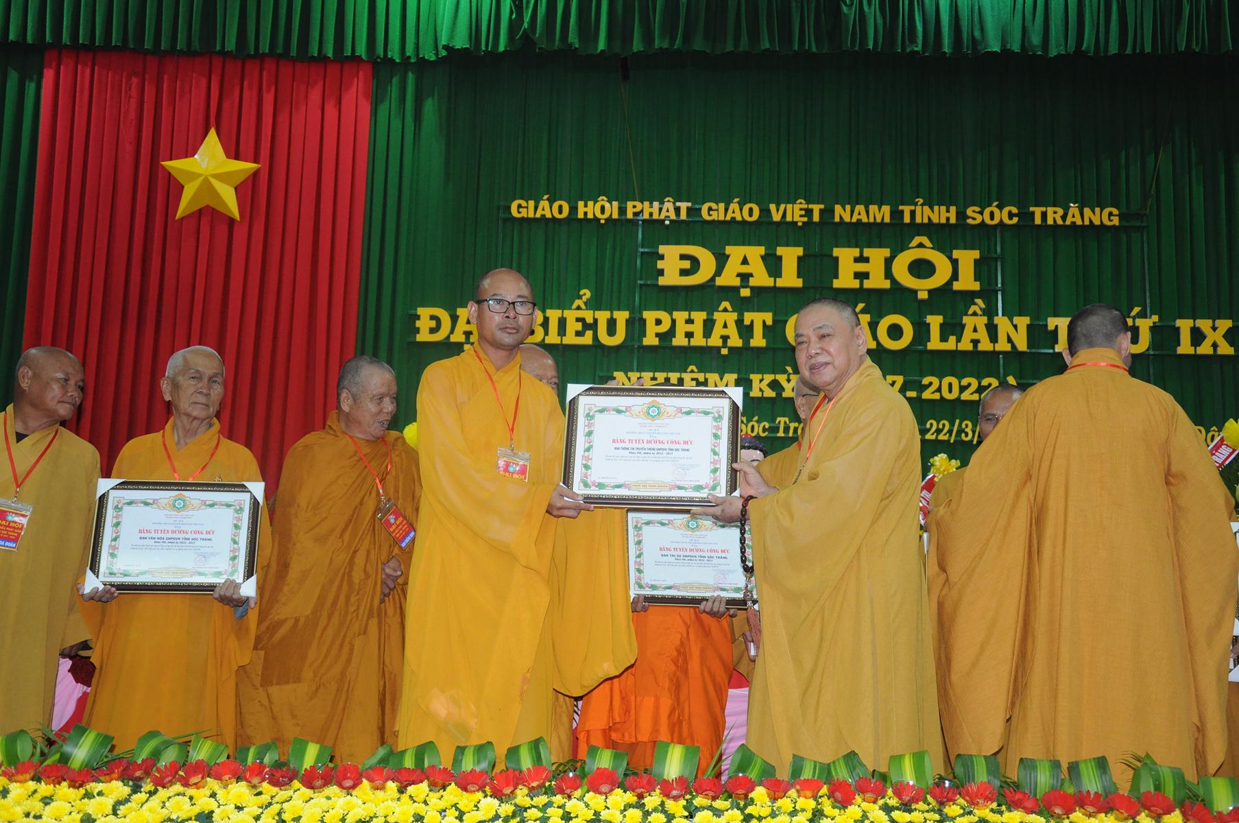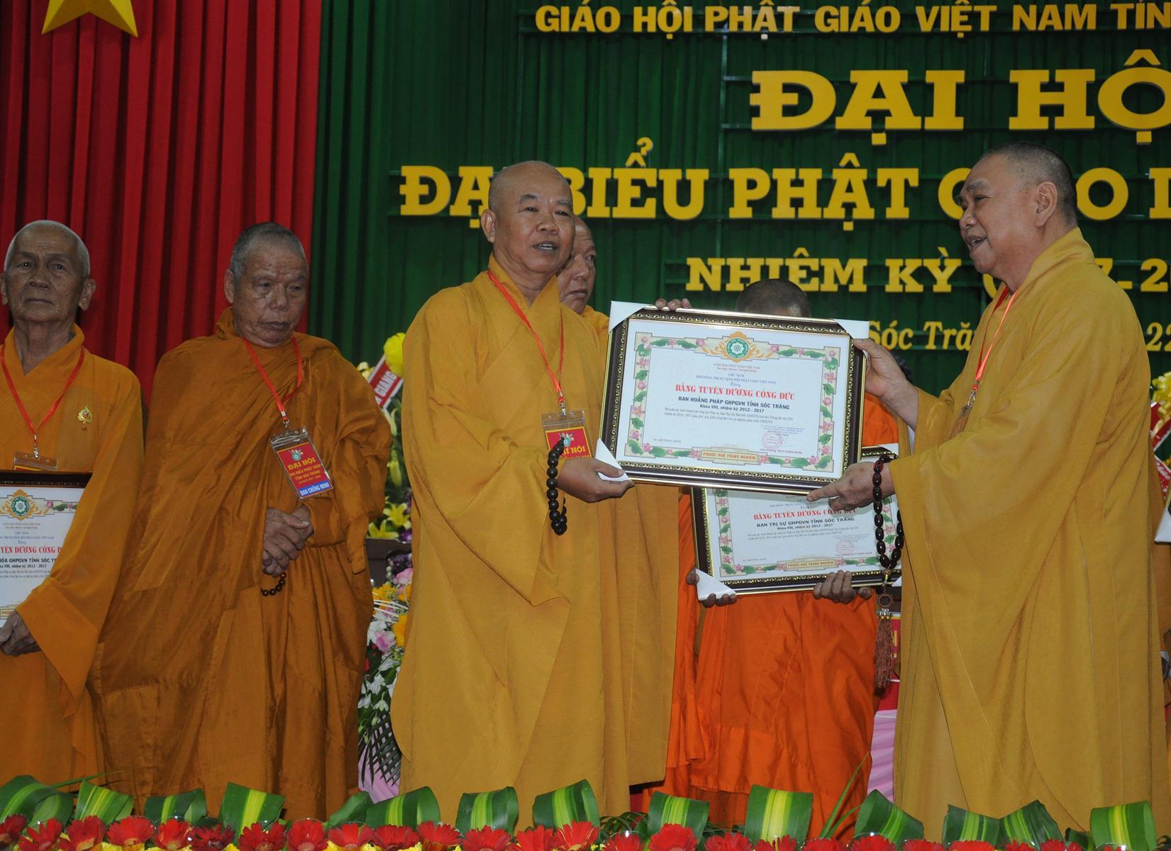 Đại hội đã thông qua báo cáo tóm tắt tổng kết công tác Phật sự nhiệm kỳ VIII và chương trình hoạt động nhiệm kỳ IX. Sau đó, tiến hành trao tặng bằng tuyên dương công đức, bằng công đức của T.Ư GHPGVN đến 15 tập thể và 3 cá nhân đã góp nhiều thành tựu đáng ghi nhận trong công tác Phật sự nhiệm kỳ VIII (2012-2017) vừa qua.