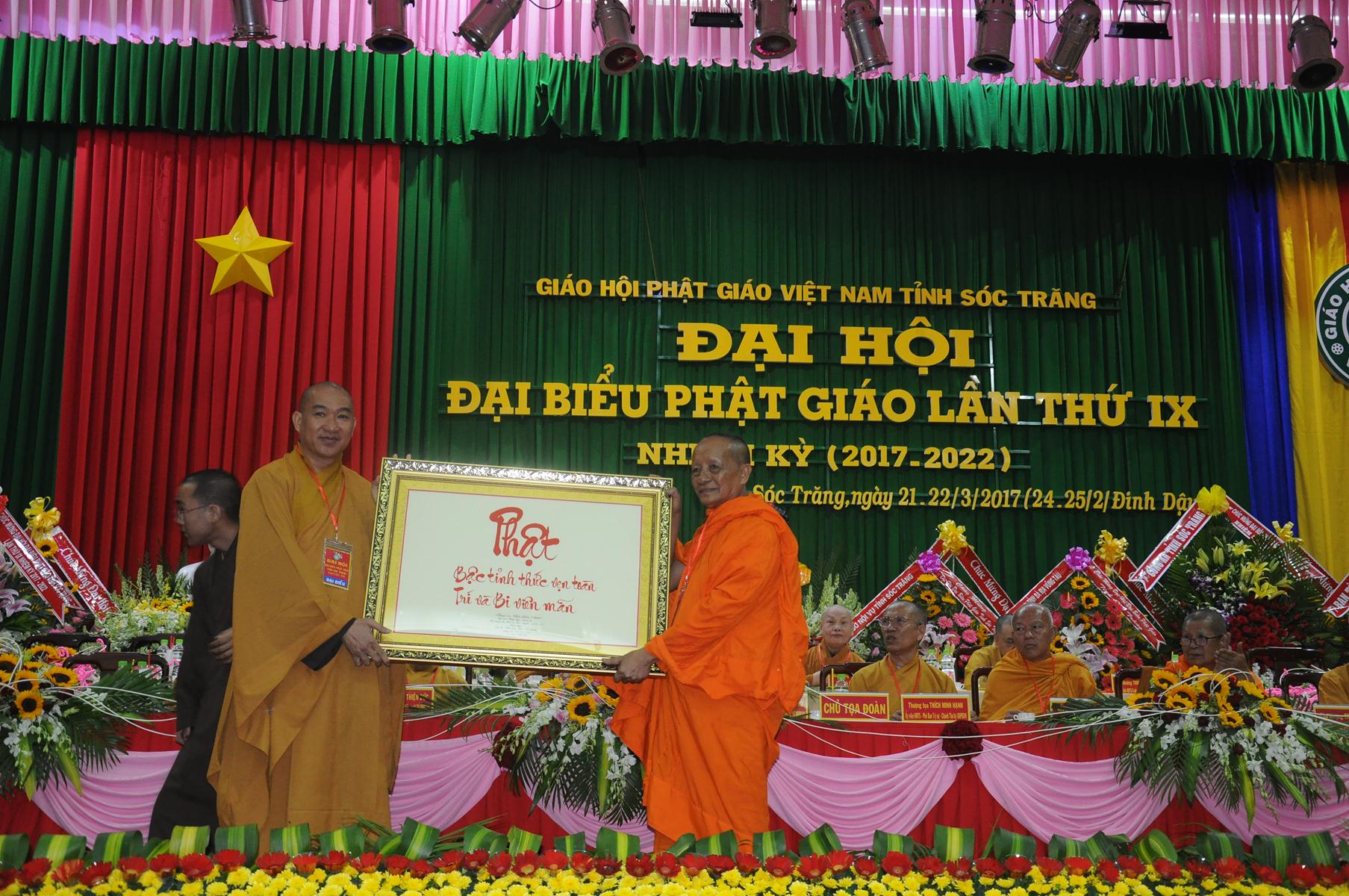 Tiếp thu ý kiến từ lãnh đạo chính quyền địa phương, HT.Thích Thiện Nhơn thay mặt T.Ư GHPGVN ban đạo từ của Ban Thường trực HĐTS đến tân Ban Trị sự GHPGVN tỉnh Sóc Trăng nhiệm kỳ IX.