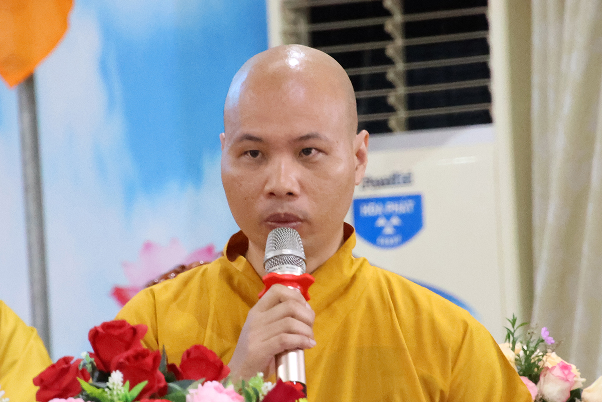 Đại diện các cấp lãnh đạo chính quyền, ông Nguyễn Thanh Sơn có lời phát biểu. Đầu tiên, ông gửi lời vấn an sức khỏe chư tôn đức và lời chúc tốt đẹp đến toàn thể hội chúng. Khóa tu mùa hè là nơi nuôi dưỡng thân tâm của các em sau một năm học dài, là sân chơi thiết thực mang lại lợi ích lớn. Ngoài lời động viên các em khóa sinh, ông còn có lời nhắc nhở Ban Tổ chức quan tâm sâu sắc đến sức khỏe của các em khóa sinh.