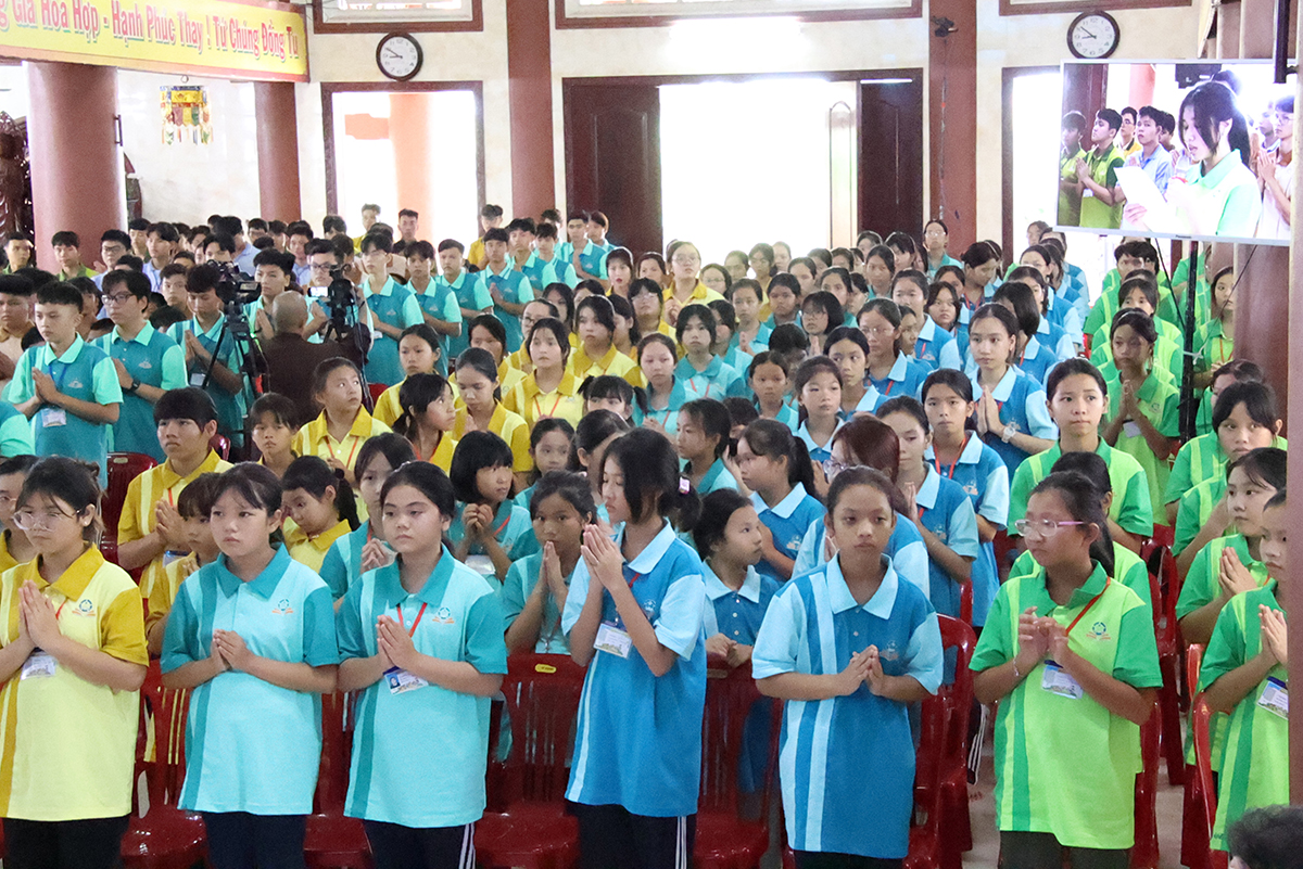 Sau nghi thức niệm Phật cầu gia hộ, chào Quốc kỳ, Đạo kỳ, Bài hát “Ước nguyện dưới chân Người” do Phật tử Hòa Nhân Hạnh biểu diễn cúng dường Chư tôn đức cùng toàn thể các em khóa sinh.