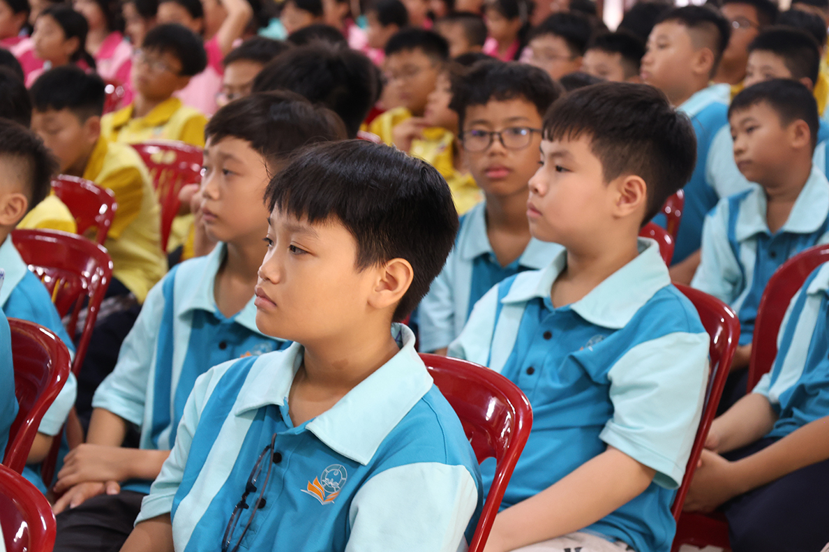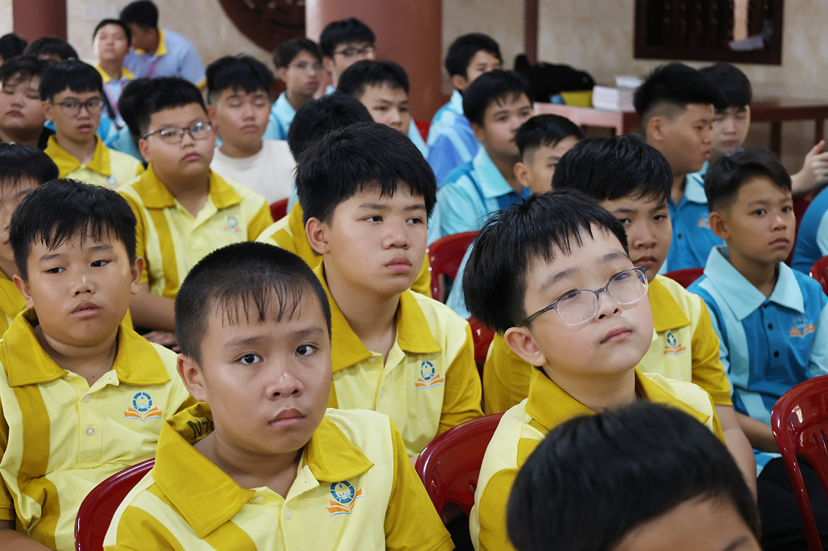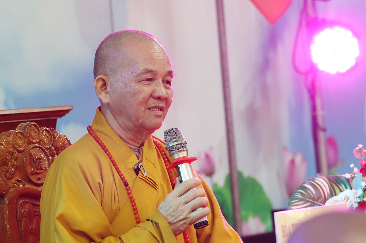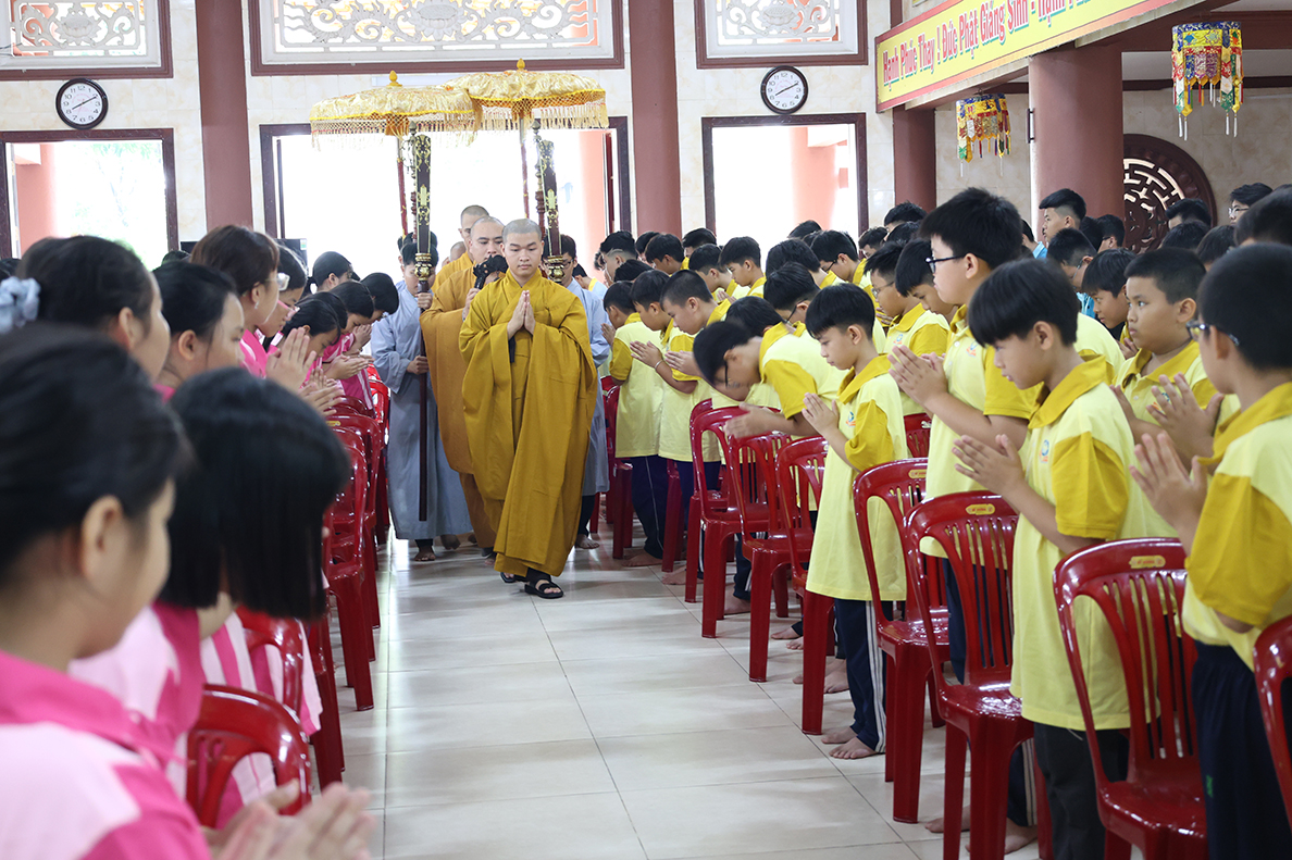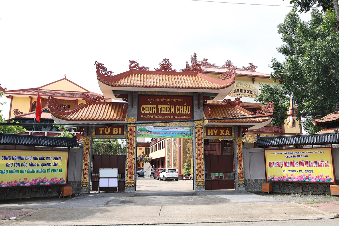 Hoà thượng Thích Minh Thiện – Trưởng BTS GHPGVN tỉnh Long An, Trụ trì chùa Thiên Châu có lời đạo từ đến các khoá sinh tại buổi lễ. Hòa thượng chia sẻ Khóa Đạo đức hè 2025 tại chùa Thiên Châu được tổ chức nhằm lan tỏa tinh thần từ bi và trí tuệ của đạo Phật, đồng thời định hướng cho các em thiếu nhi trở thành những công dân có ích, biết yêu quê hương đất nước, biết sống biết ơn và thực hành đạo lý “uống nước nhớ nguồn” theo truyền thống tốt đẹp của dân tộc Việt Nam. Bên cạnh đó, khóa tu cũng tạo điều kiện để các em được trau dồi những kỹ năng sống cần thiết, giúp các em ứng xử chuẩn mực trong đời sống hằng ngày. Hoà thượng còn cho biết toàn bộ chi phí do chùa Thiên Châu đài thọ. Hòa thượng kỳ vọng rằng sau khóa tu, các em sẽ mang theo tinh thần sống cao đẹp: “Không làm các điều ác, siêng làm các việc lành, giữ tâm ý trong sạch – ấy mới là người đệ tử chân thật của Đức Phật”.