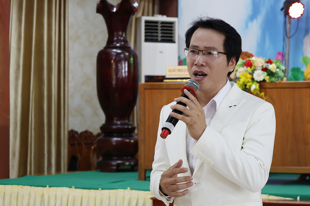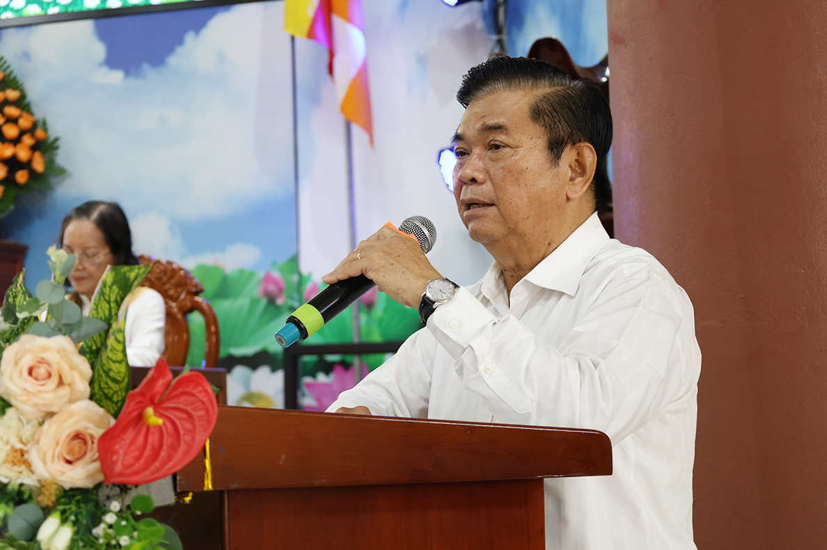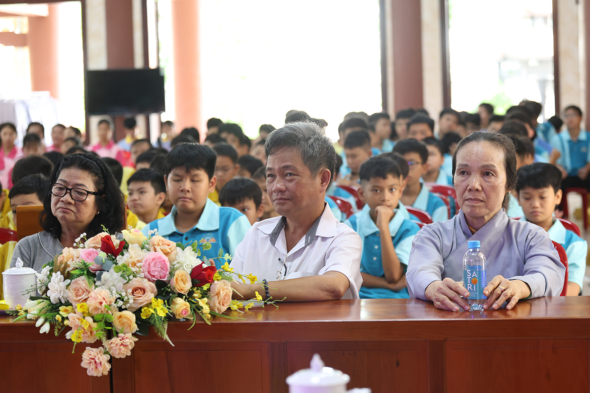 Đại diện các cấp lãnh đạo chính quyền, ông Dương Quốc Xuân – Nguyên Phó Bí thư tỉnh ủy, Nguyên Chủ tịch UBND tỉnh Long An gửi lời vấn an sức khỏe Chư tôn đức và chào đón các em đến với Khóa Đạo đức hè năm nay tại chùa Thiên Châu. Ông có lời tán dương Chư Tôn đức đã tạo điều kiện để các học sinh trên địa bàn tỉnh có cơ hội được trải nghiệm môi trường lành mạnh, nâng cao nhận thức về đạo đức, lối sống và vun bồi giá trị tâm hồn. Bên cạnh đó, ông hy vọng Ban Tổ chức quan tâm sâu sắc đến các em, và có nhiều hoạt động bổ ích để nâng cao kỹ năng sống, tinh thần trách nhiệm và tình yêu thương trong các em nhỏ.