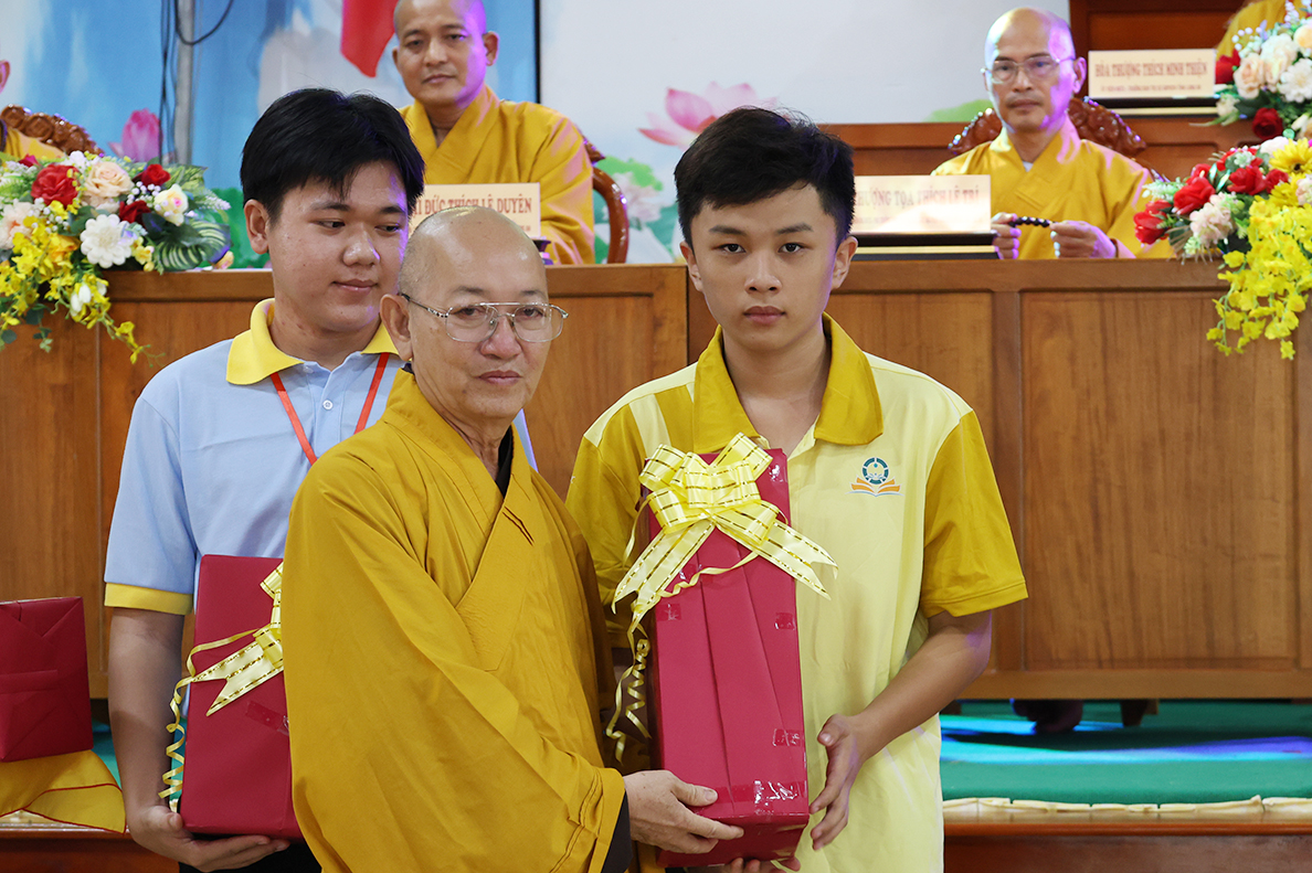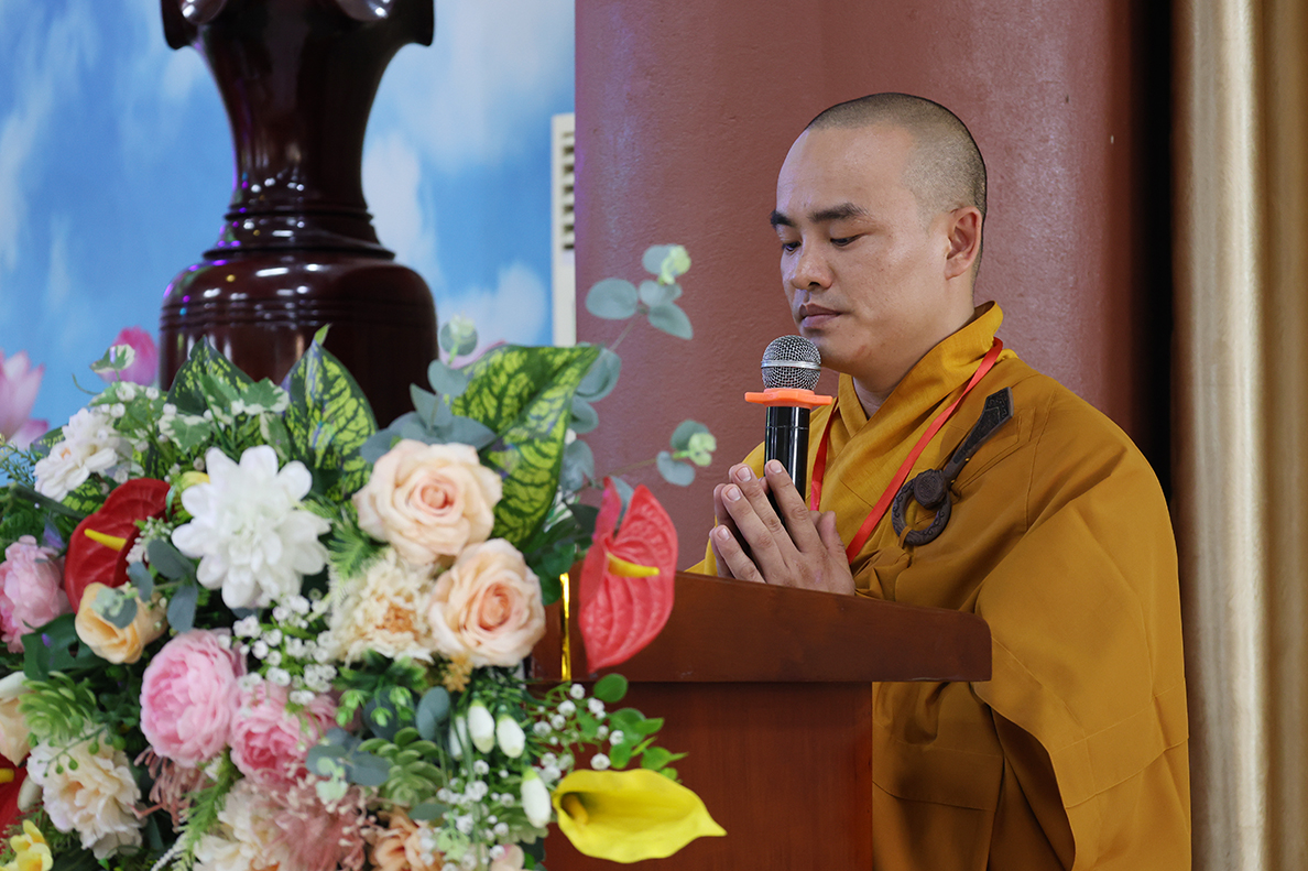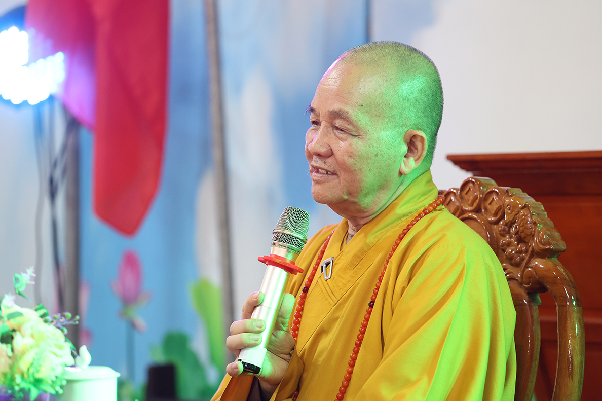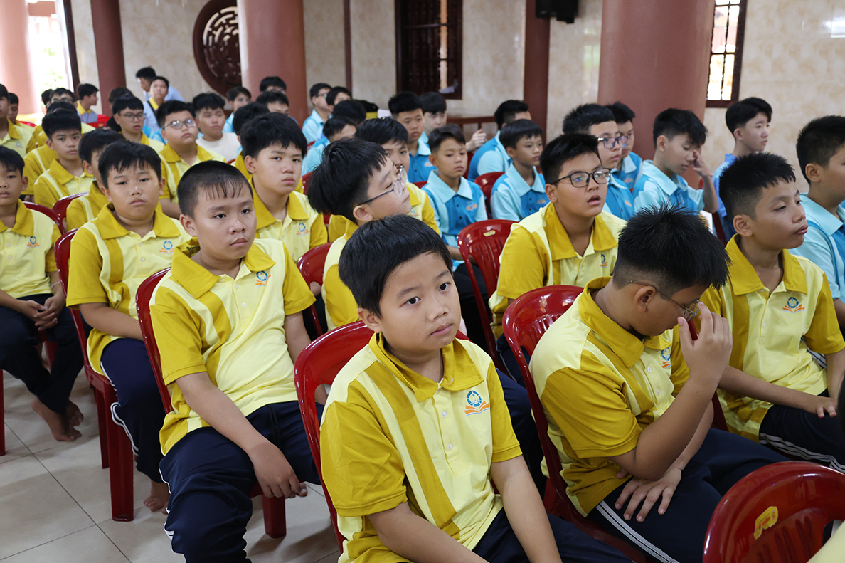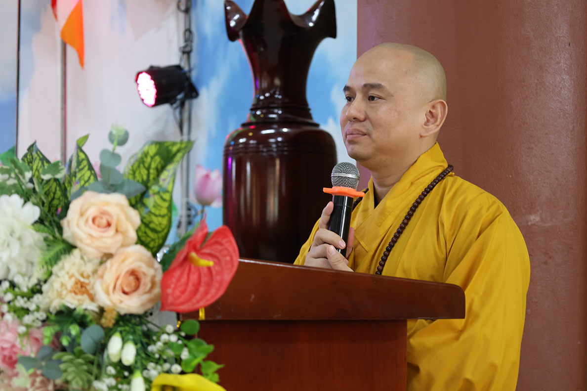 ĐĐ. Thích Lệ Ngôn – Phó BTS kiêm Trưởng ban Hoằng pháp GHPGVN tỉnh có lời chia sẻ đến các em khóa sinh. Sau một năm học, kỳ nghỉ hè là dịp để các em vui chơi giải trí, bên cạnh đó, dịp hè cũng là khoảng thời gian các em nên tham gia những hoạt động ý nghĩa để rèn luyện đạo đức, phát triển nhân cách và nuôi dưỡng đời sống tinh thần lành mạnh. Đại đức hy vọng các em khóa sinh sẽ sinh hoạt tại Khóa Đạo đức hè một cách đoàn kết, vâng lời quý thầy cô, biết lắng nghe, chia sẻ và cố gắng áp dụng những điều tốt đẹp đã học vào cuộc sống hằng ngày để trở thành những người con ngoan, trò giỏi và công dân có ích cho xã hội.