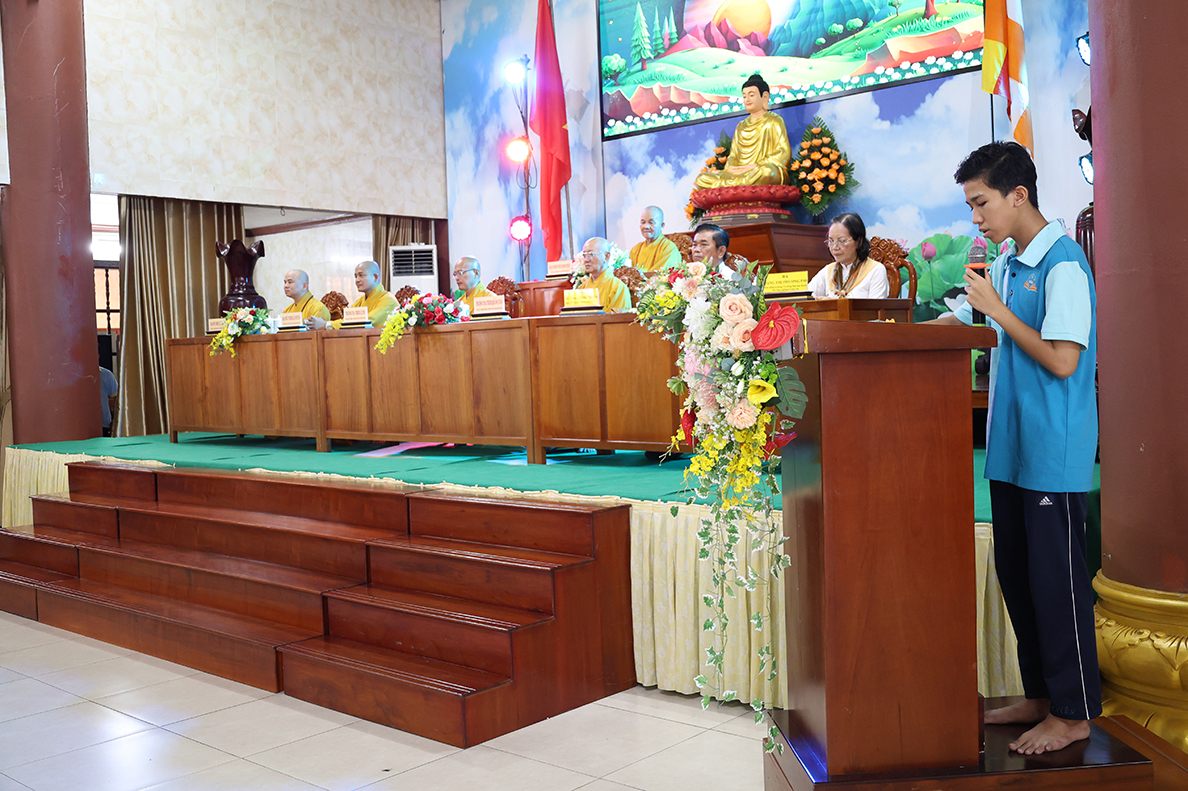 Khóa sinh Lại Phúc Nguyên đại diện các khóa sinh dâng lời phát nguyện trước chư Tôn đức. Toàn thể khóa sinh đồng phát nguyện: nghiêm chỉnh chấp hành nội quy, thời khóa; nổ lực tu học, siêng năng lao tác công quả; đem điều tốt đẹp được học tại Chùa Thiên Châu lan tỏa khắp mọi người;…