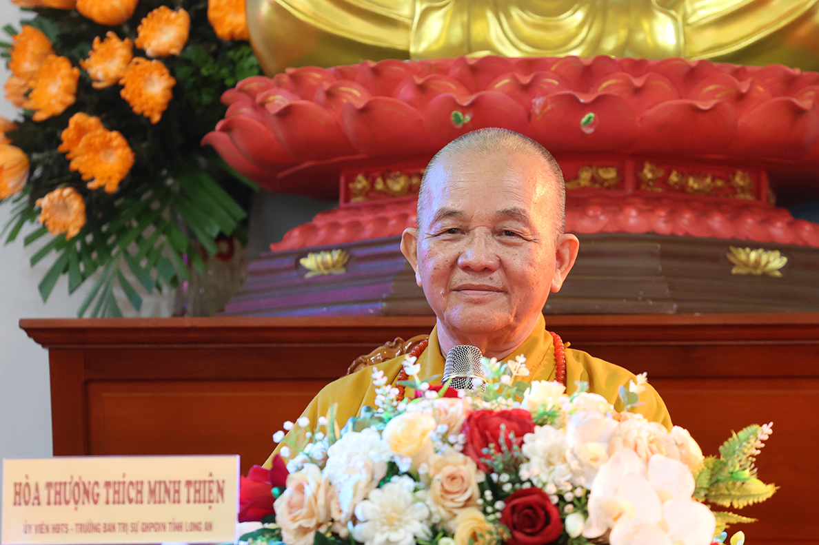 Quang lâm về chứng minh và tham dự buổi lễ có: HT. Thích Minh Thiện – UV HĐTS, Phó ban Hoằng pháp TƯ, Trưởng BTS GHPGVN tỉnh Long An, Trụ trì chùa Thiên Châu; TT. Thích Quảng Tâm – UV HĐTS, Phó Trưởng Ban Thường trực BTS GHPGVN tỉnh Long An; TT. Thích Lệ Trí – UV HĐTS, Phó ban Văn hóa TƯ, Phó BTS kiêm Trưởng ban GDPG GHPGVN tỉnh; ĐĐ. Thích Lệ Duyên – Phó ban kiêm Chánh Thư ký BTS GHPGVN tỉnh; ĐĐ. Thích Lệ Ngôn – Phó BTS kiêm Trưởng ban Hoằng pháp GHPGVN tỉnh; NS. TN. Diệu Huệ – UVTT BTS GHPGVN tỉnh.