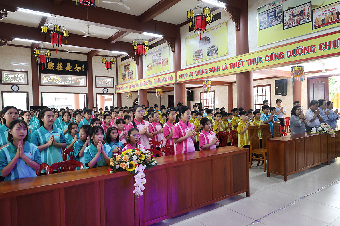 Sáng ngày 14/6/2025 (nhằm ngày 19/5/Ất Tỵ), tại Hội trường Văn phòng BTS GHPGVN tỉnh Long An – Chùa Thiên Châu, số 101, đường Huỳnh Văn Nhứt, phường 3, thành phố Tân An, tỉnh Long An long trọng tổ chức Lễ Khai Giảng Khóa Đạo Đức Hè Năm 2025 chủ đề Hiểu và thương lần thứ 8 với khoảng 200 em học sinh về tham dự.