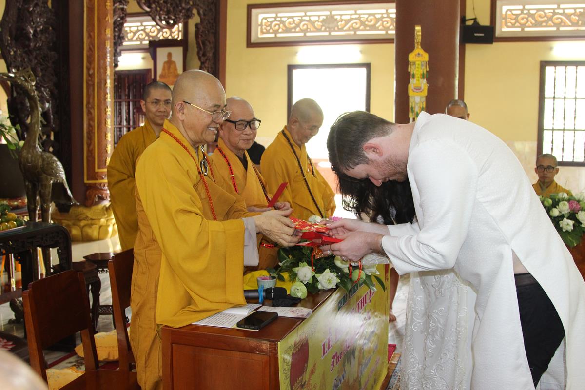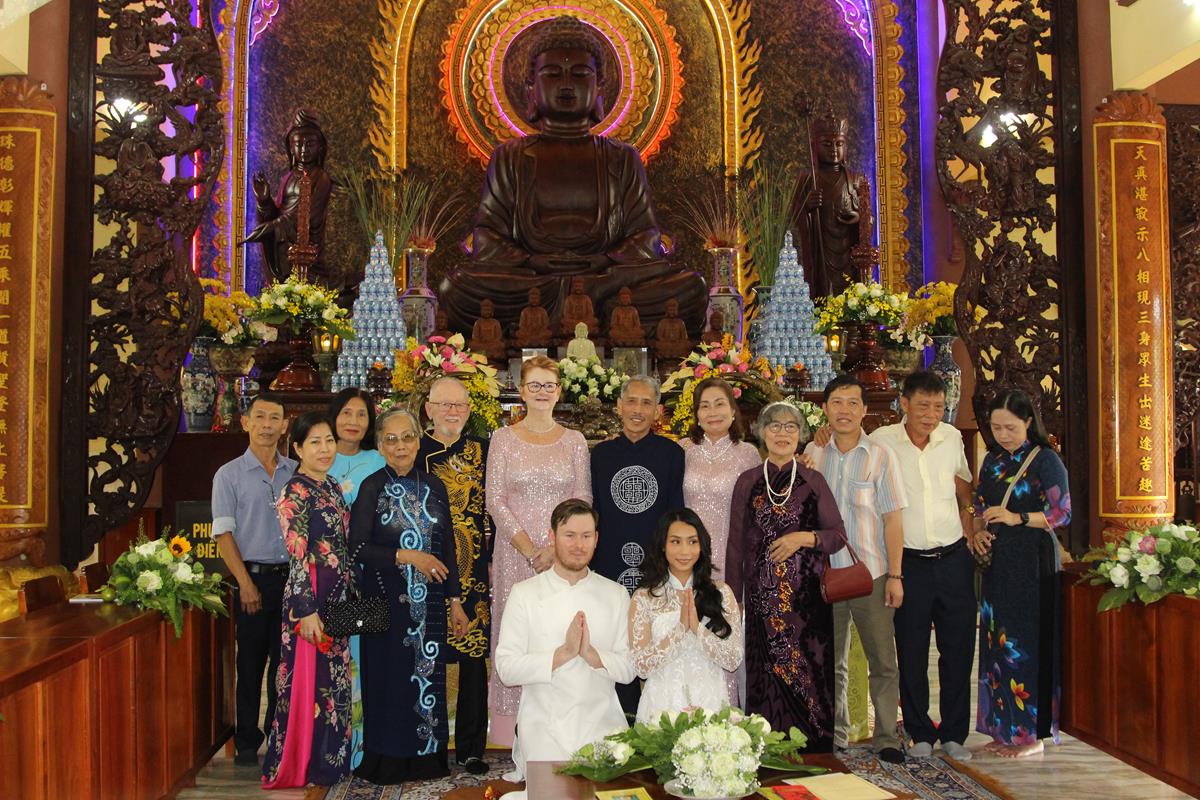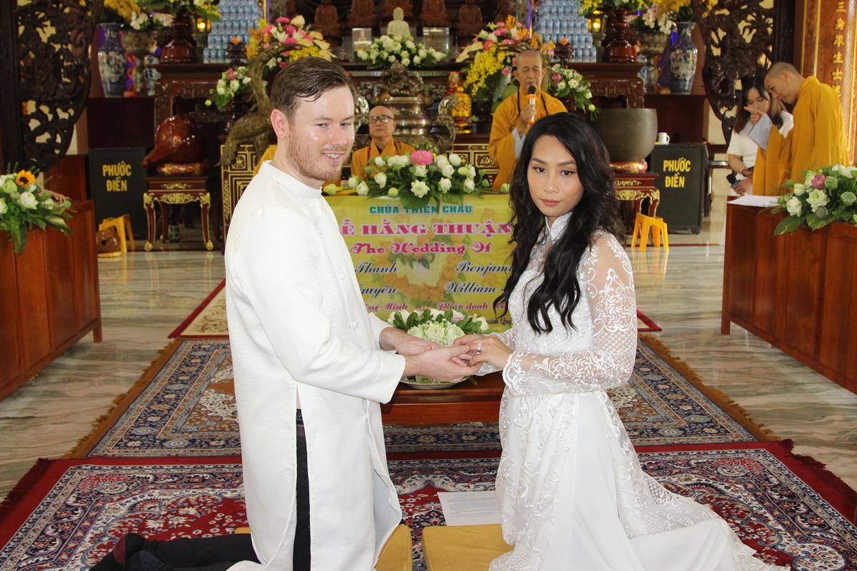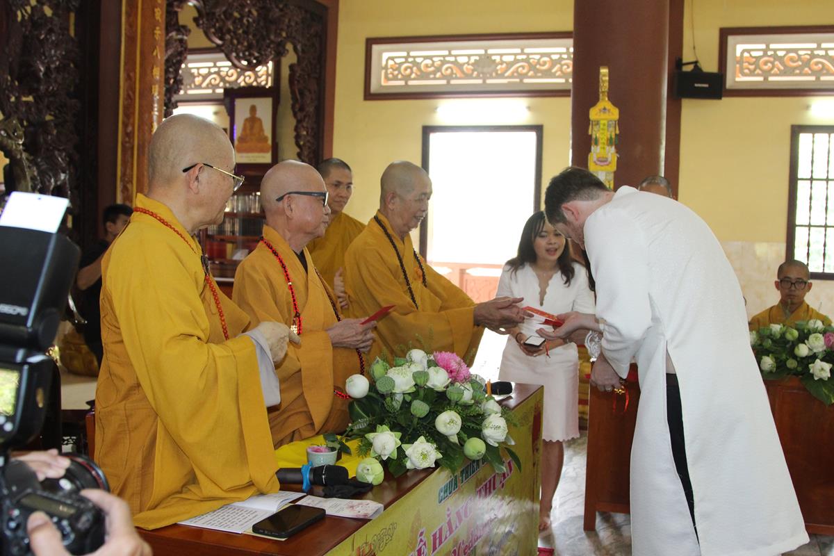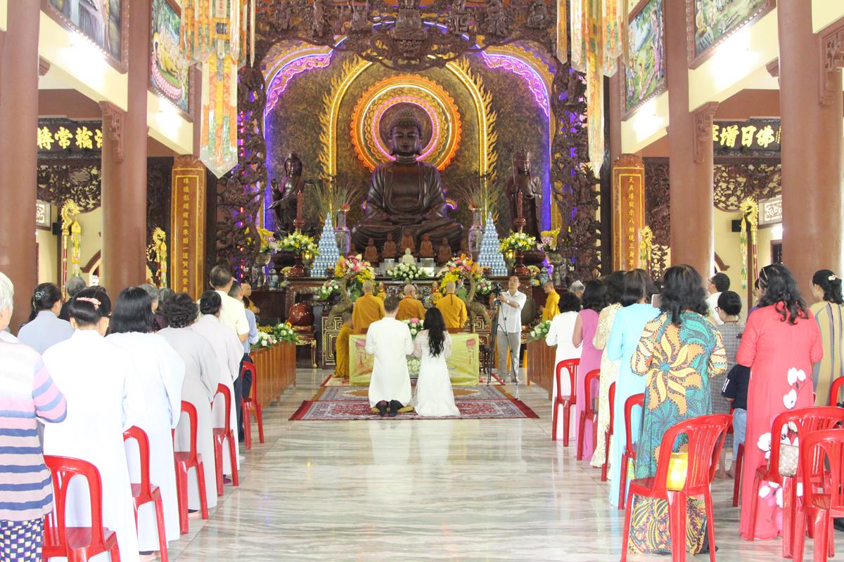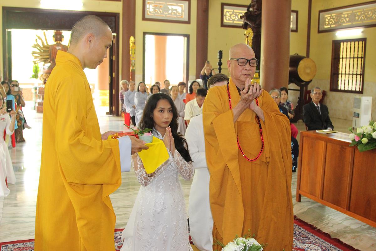 Dưới sự hướng dẫn của ĐĐ. Thích Minh Tâm, tân lang và tân nương đảnh lễ tri ân hai đấng sinh thành và dâng phát nguyện trong buổi lễ: (1) chung thuỷ suốt đời, (2) hiếu kính song thân hai bên, (3) mở rộng lòng thương, (4) thâm tín Tam bảo.