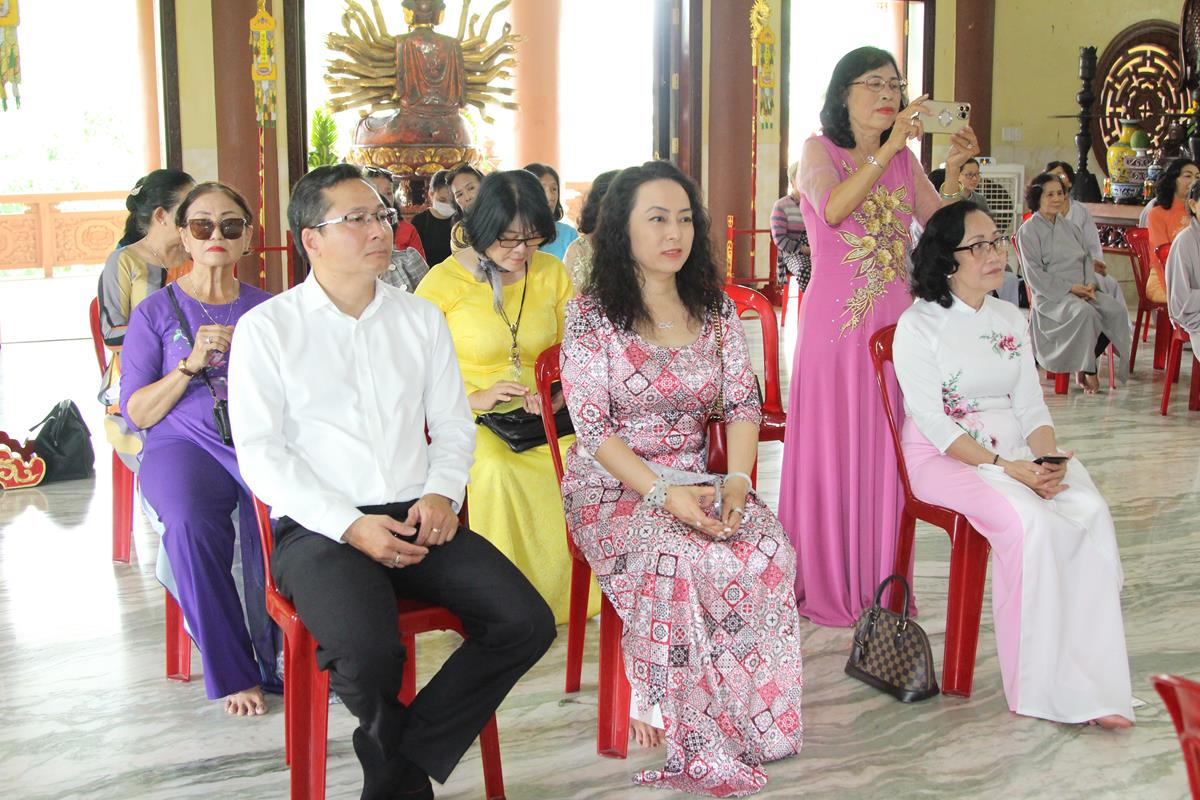 Chứng minh buổi lễ có sự hiện diện của: HT. Thích Thiện Tài – Chứng minh BTS GHPGVN tỉnh Long An; HT. Thích Minh Thiện – UV HĐTS, Phó ban Hoằng pháp TW kiêm Trưởng đoàn Giảng sư đoàn ban Hoằng pháp TW, Trưởng ban BTS GHPGVN tỉnh Long An, trụ trì chùa Thiên Châu; HT. Thích Huệ Vân – Chứng minh BTS GHPGVN huyện Tân Trụ; TT. Thích Đức Hoàng – Phó BTS GHPGVN tỉnh; ĐĐ. Thích Lệ Duyên – Phó ban kiêm Chánh Thư ký BTS GHPGVN tỉnh, Trưởng BTS GHPGVN huyện Đức Hòa; ĐĐ. Thích Huệ Dũng – UVTT BTS GHPGVN tỉnh; ĐĐ. Thích Huệ Thông – Trưởng ban Thông tin Truyền thông GHPGVN tỉnh; Chư tôn đức Tăng ni đồng về chứng minh. Buổi lễ còn có sự tham dự của thông gia hai bên, quý bà con quyến thuộc và bạn bè thân hữu.