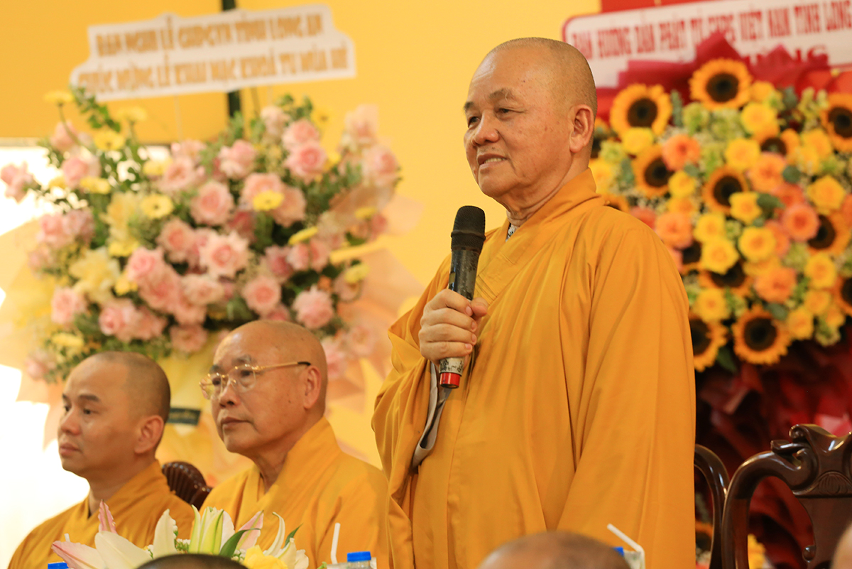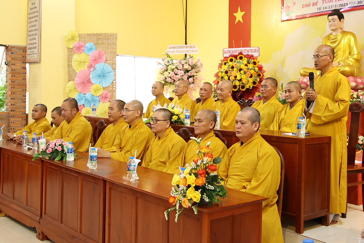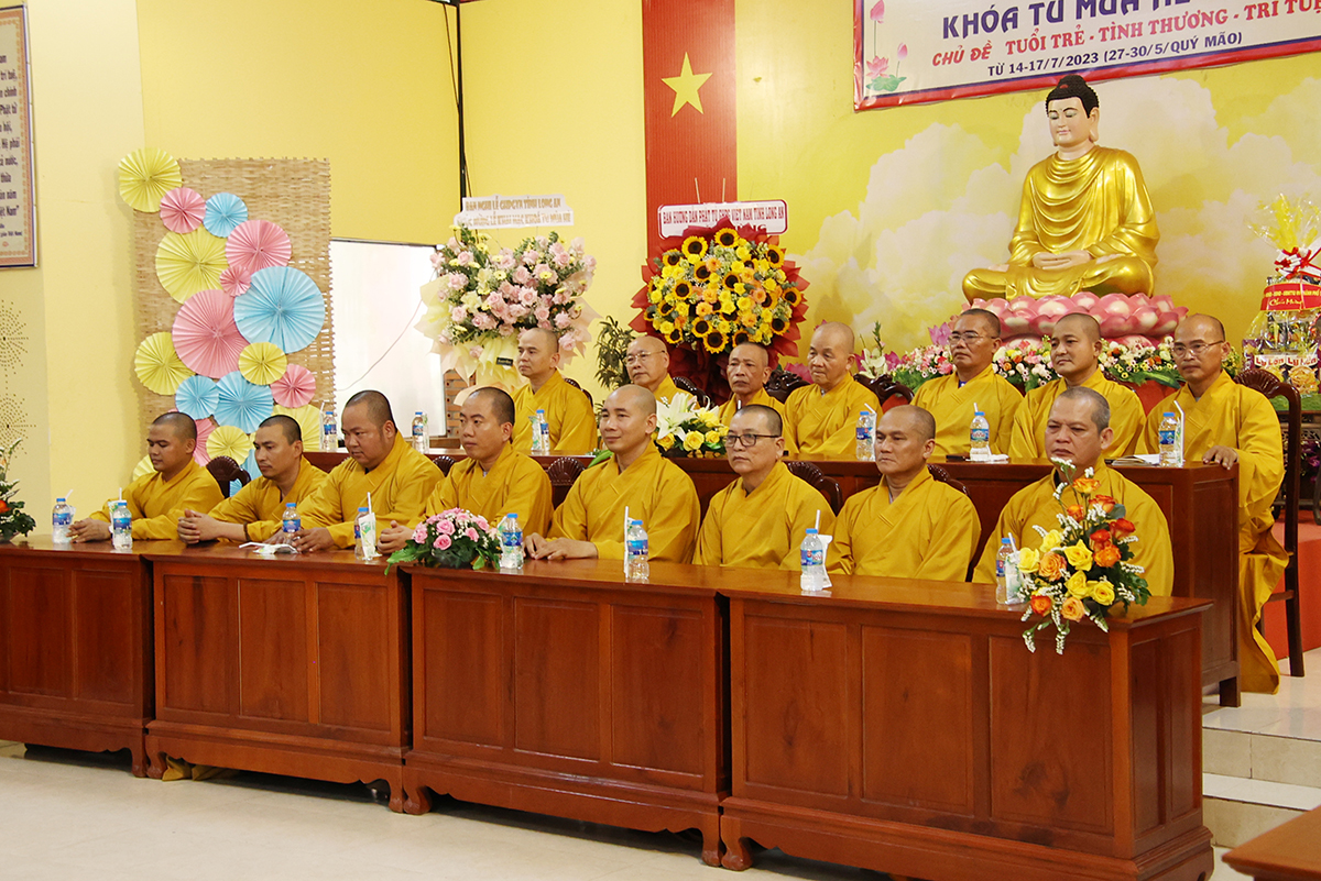 Quang lâm chứng minh và tham dự có sự hiện diện của: HT. Thích Thiện Huệ – Thành viên HĐCM, Chứng minh BTS GHPGVN tỉnh Long An; HT. Thích Minh Thiện – UV HĐTS, Phó ban Hoằng pháp TW, Trưởng BTS GHPGVN tỉnh Long An; TT. Thích Minh Thọ – UV HĐTS, Phó BTS GHPGVN tỉnh; TT. Thích Lệ Trí – UV HĐTS, Phó BTS GHPGVN tỉnh, Trưởng ban Tổ chức; ĐĐ. Thích Lệ Duyên, ĐĐ. Thích Lệ Ngôn – đồng Phó BTS GHPGVN tỉnh; Chư tôn đức Tăng ni đồng về tham dự.