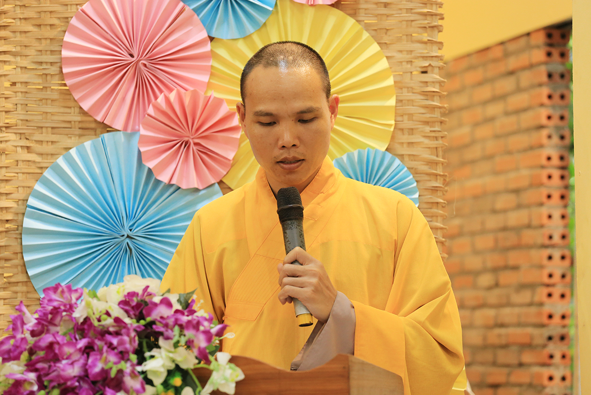 Sau khi thông qua lý do buổi lễ và thành phần tham dự, TT. Thích Lệ Trí đã thay mặt Ban Tổ chức báo cáo công tác tổ chức khoá tu. Được biết Khoá tu năm nay có nhiều điểm nổi bật hơn, được mở rộng về phạm vi sinh hoạt, số lượng khoá sinh tăng gần gấp đôi so với năm trước. Khoá tu năm nay, Ban Tổ chức đã thỉnh mời chư Tôn đức trưởng các đầu ngành của Phật giáo tỉnh về hướng dẫn cho các em, bên cạnh đó Ban Tổ chức cũng thỉnh các vị giảng sư có chuyên môn, tâm lý và nhiều năm giảng dạy cho thiếu niên về để chia sẻ cho các em. Đặc biệt, đến với khoá tu lần này, các bạn khoá sinh sẽ được định hướng về tương lai, cũng như giải quyết những khó khăn trong cuộc sống, nhất là tình trạng trầm cảm mà các bậc phụ huynh đang rất lo lắng và nhắn gửi đến Ban Tổ chức. Trong suốt những ngày của khoá tu sẽ có khoảng gần 800 người trong đó bao gồm chư Tôn đức, khoá sinh và các tình nguyện viên, thành viên các ban của khoá tu.