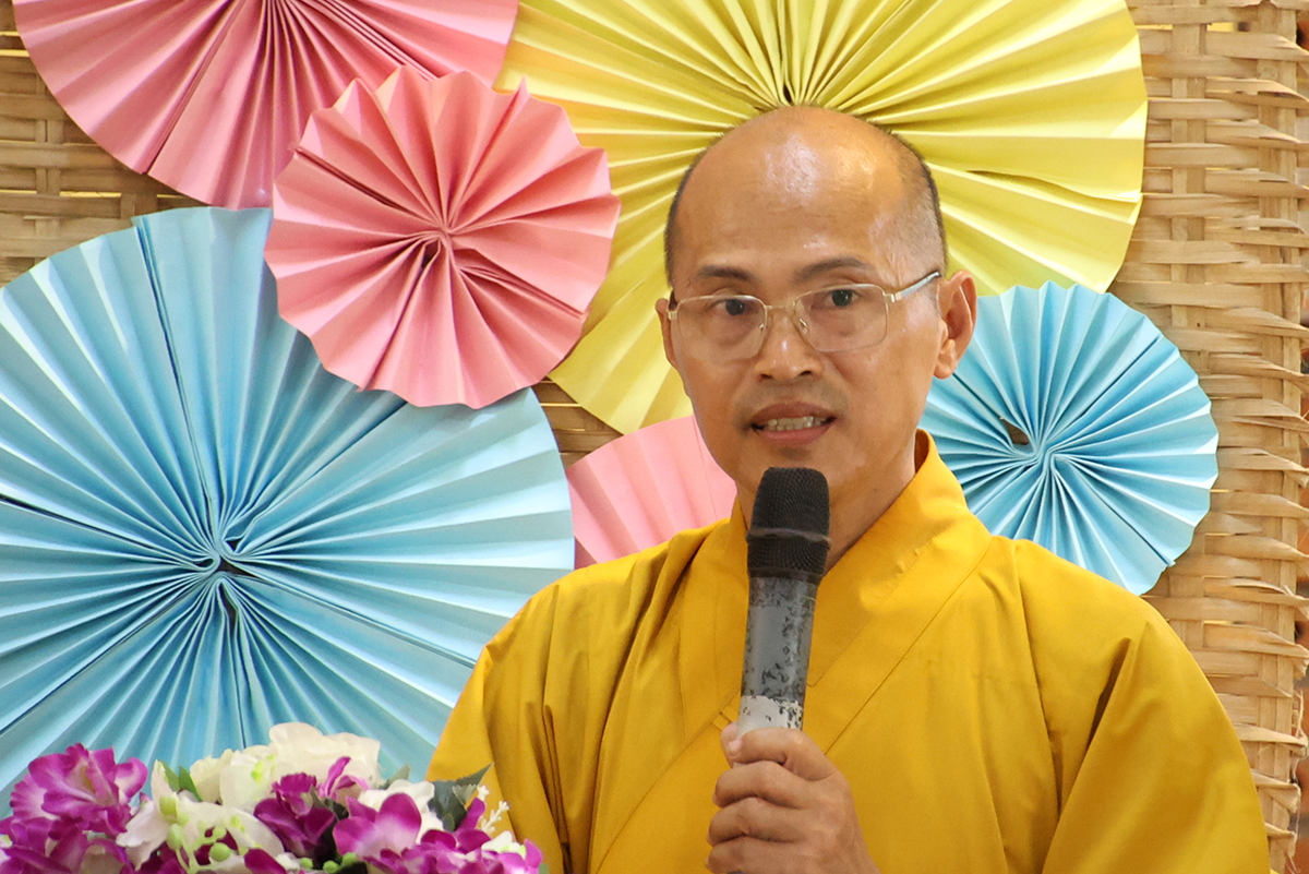 Hòa thượng hoan hỷ trước lời báo cáo chi tiết của Thượng tọa Trưởng Ban Tổ chức và mong rằng các bạn khoá sinh hãy sống bằng tinh thần “Tình thương và trí tuệ”. Ngài cũng gửi lời cảm ơn đến các vị tình nguyện đã phụng sự trong khoá tu.