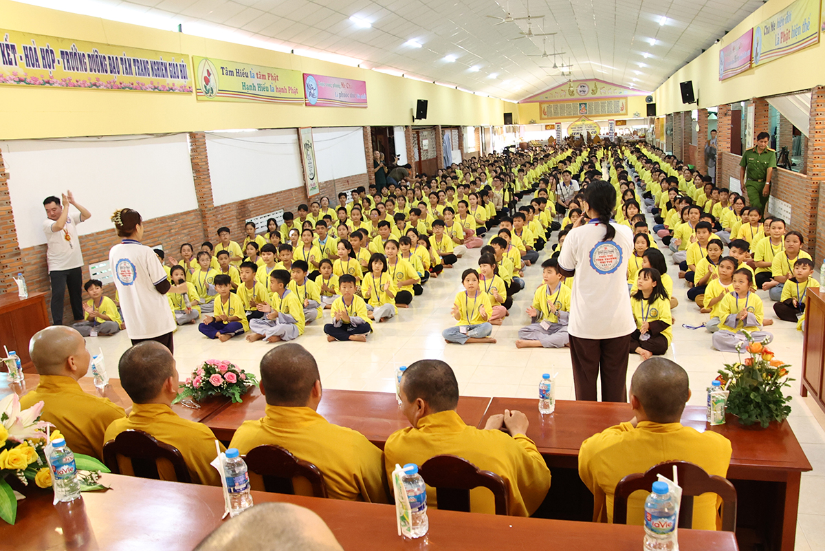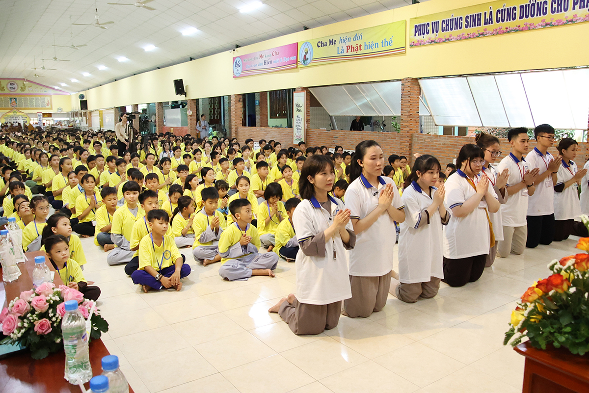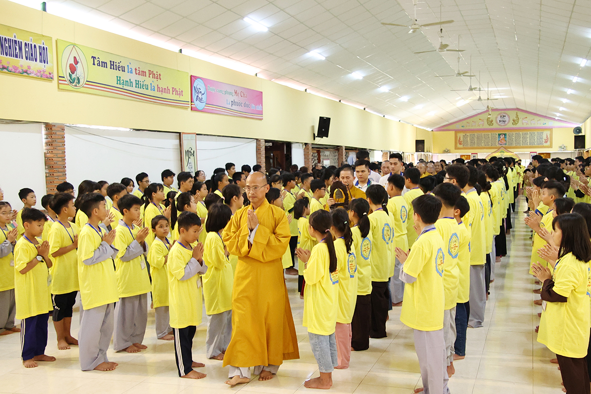 Hòa thượng mong mỏi sau khoá tu các em sẽ trở về với những kỉ niệm đẹp, những lời dạy ý nghĩa đã được học ở khoá tu, trở thành con ngoan trò giỏi cho gia đình và xã hội. Đại chúng đồng thanh “Y giáo phụng hành” với những lời đạo từ của Hòa thượng.