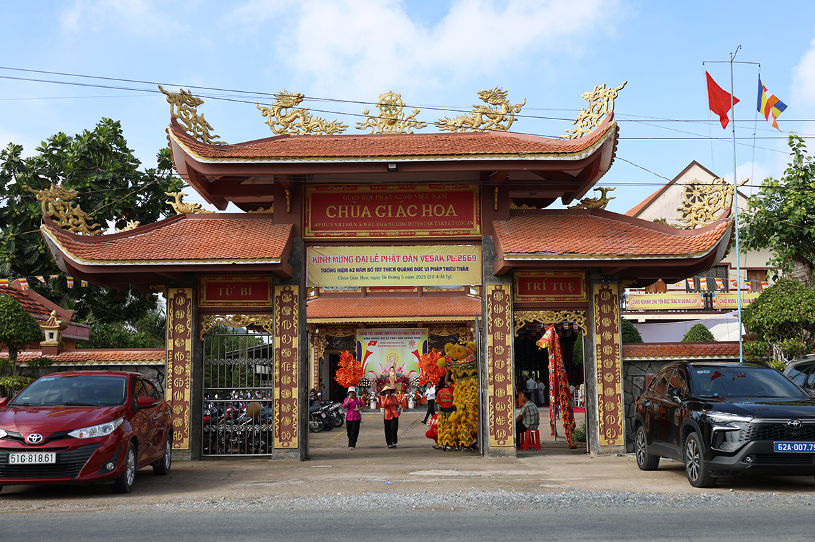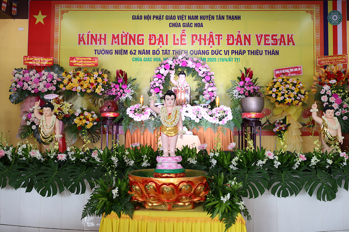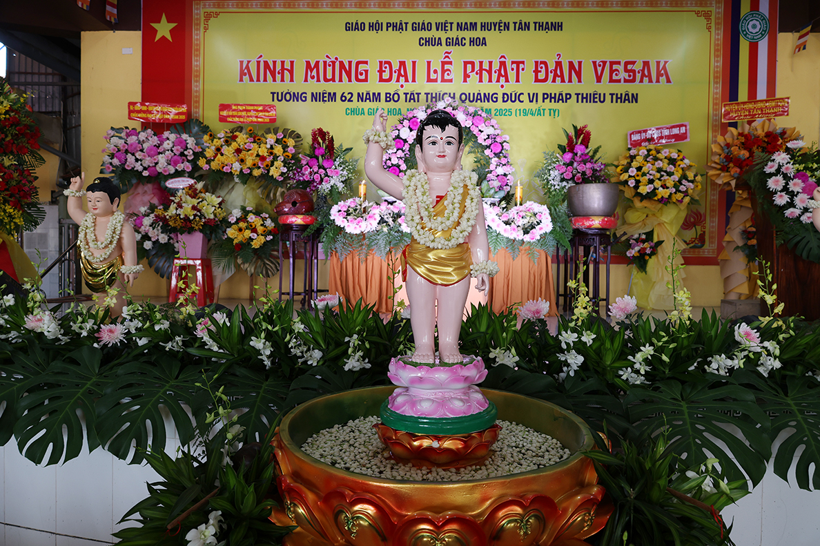 Sáng ngày 16/5/2025 (nhằm ngày 19/4/Ất Tỵ), chùa Giác Hoa, xã Hậu Thạnh Đông, huyện Tân Thạnh, tỉnh Long An trang nghiêm tổ chức Đại lễ Phật Đản PL.2569 – DL.2025 và Tưởng niệm 62 năm Bồ-tát Thích Quảng Đức vị pháp thiêu thân.