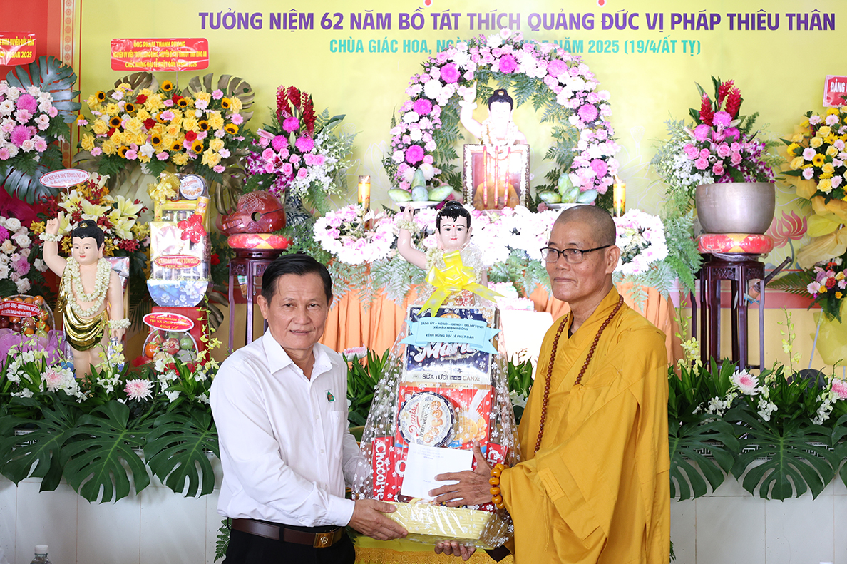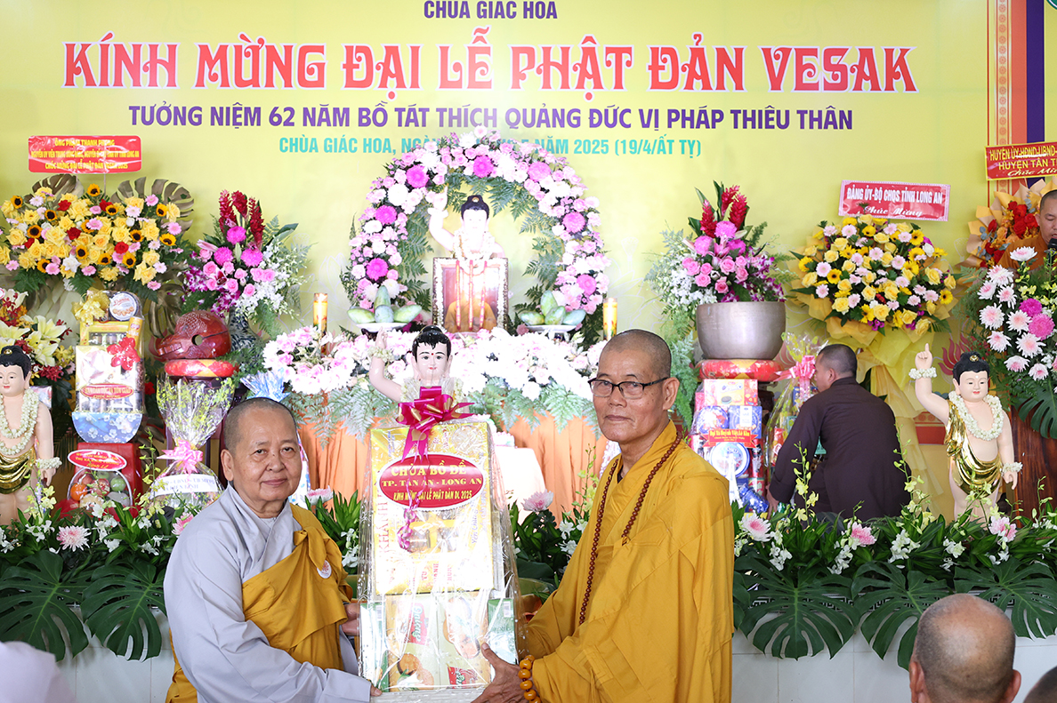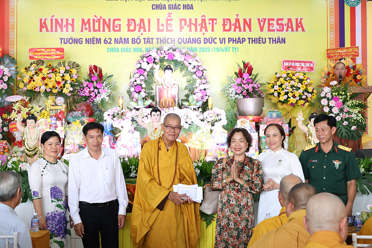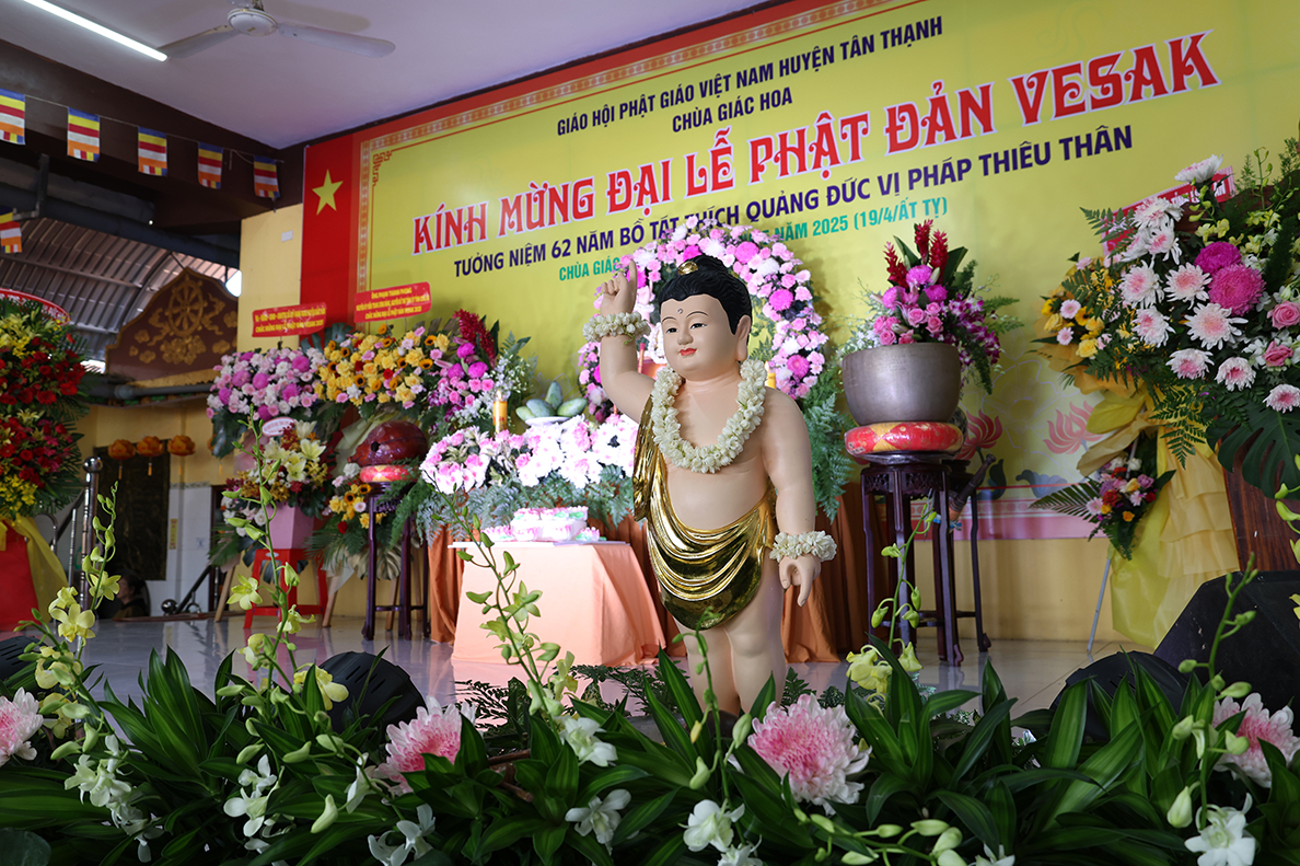 Sáng ngày 16/5/2025 (nhằm ngày 19/4/Ất Tỵ), chùa Giác Hoa, xã Hậu Thạnh Đông, huyện Tân Thạnh, tỉnh Long An trang nghiêm tổ chức Đại lễ Phật Đản PL.2569 – DL.2025 và Tưởng niệm 62 năm Bồ-tát Thích Quảng Đức vị pháp thiêu thân.