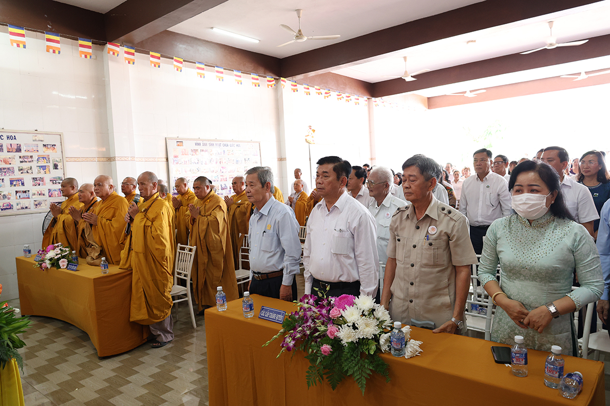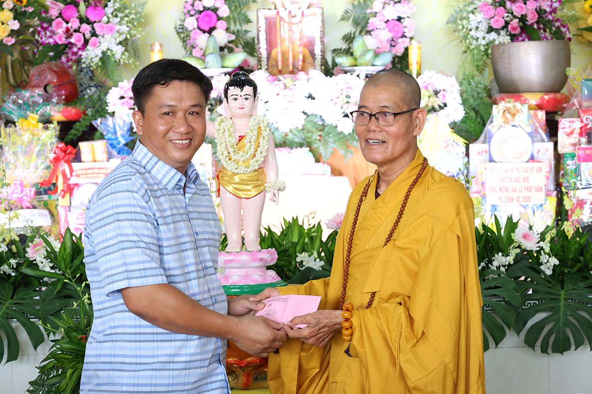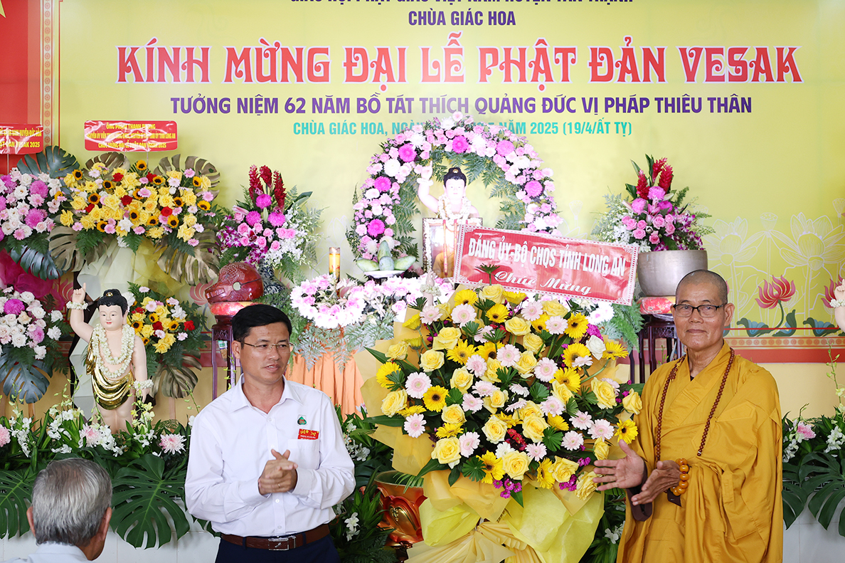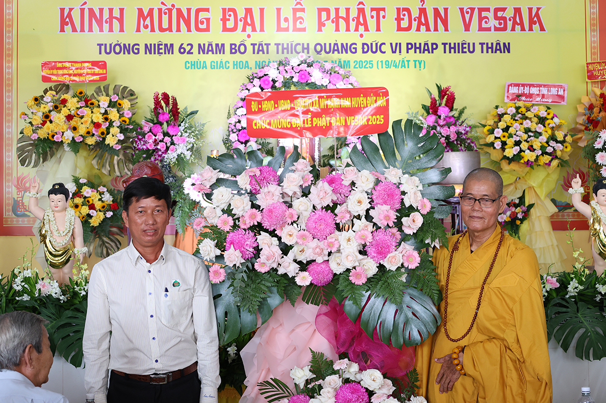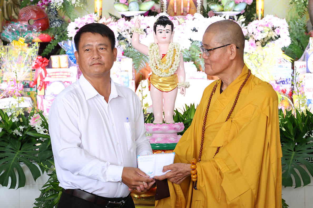 Buổi lễ được hoàn mãn sau lời phát biểu cảm tạ của TT. Thích Lệ Tấn – Trưởng BTS GHPGVN huyện. Sau lễ hành chính, Chư Tôn đức và lãnh đạo chính quyền đã trang nghiêm thực hiện nghi thức cúng dường Phật Đản và tưởng niệm Bồ-tát Thích Quảng Đức.