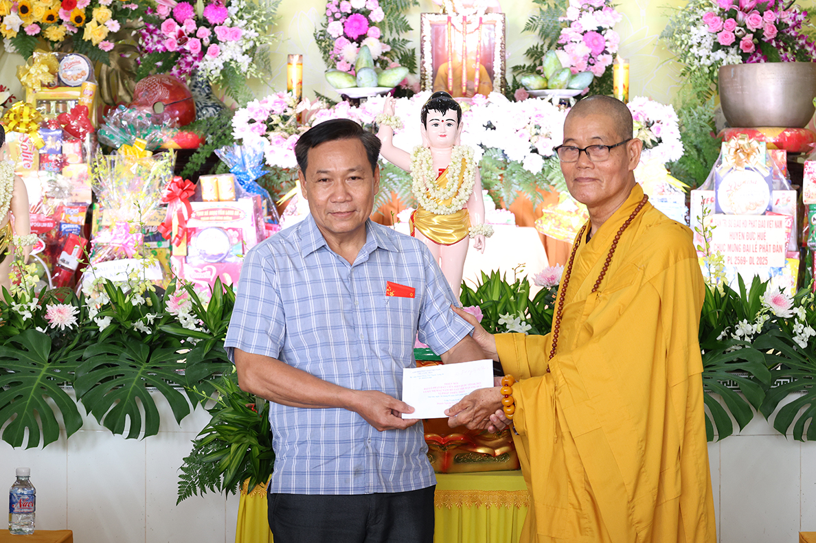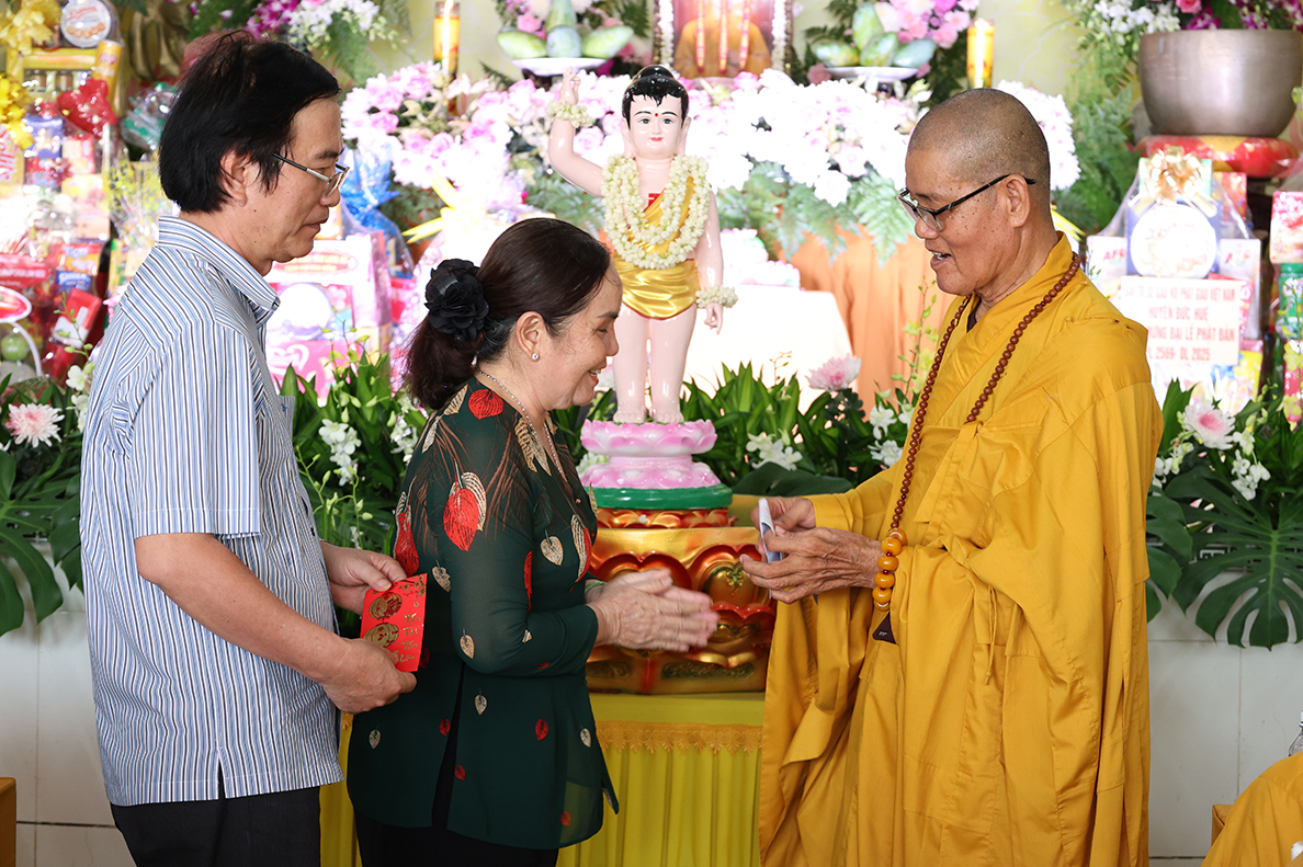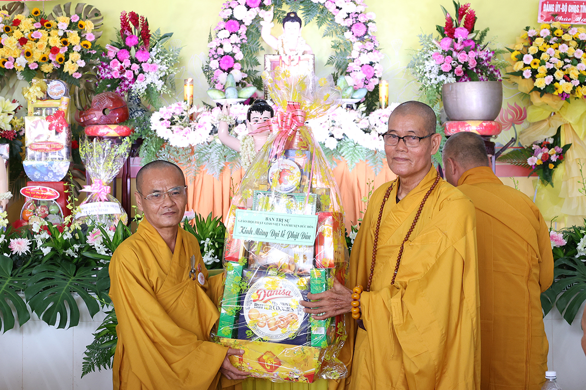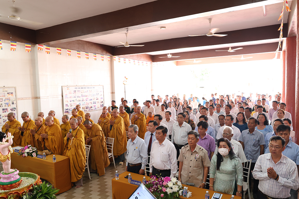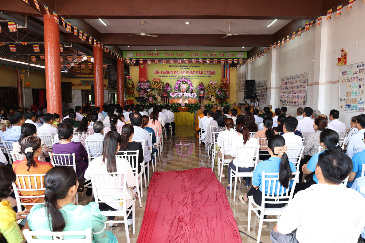Buổi lễ được hoàn mãn sau lời phát biểu cảm tạ của TT. Thích Lệ Tấn – Trưởng BTS GHPGVN huyện. Sau lễ hành chính, Chư Tôn đức và lãnh đạo chính quyền đã trang nghiêm thực hiện nghi thức cúng dường Phật Đản và tưởng niệm Bồ-tát Thích Quảng Đức.