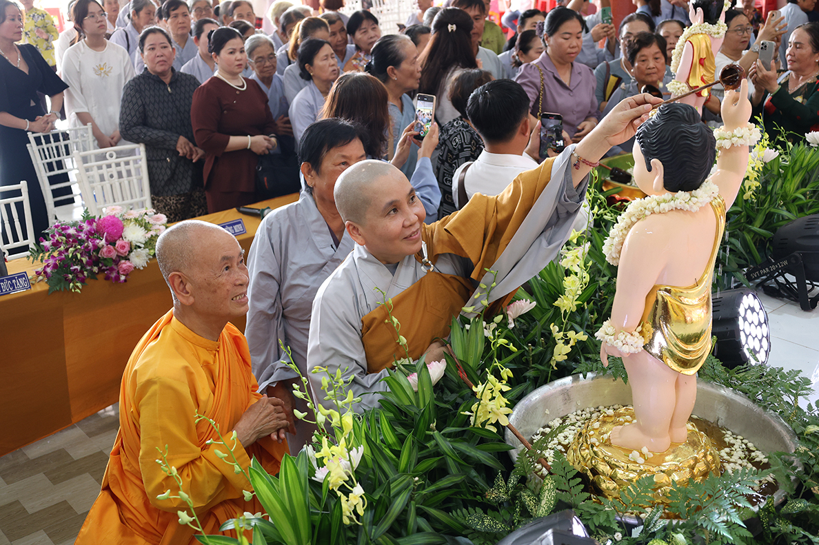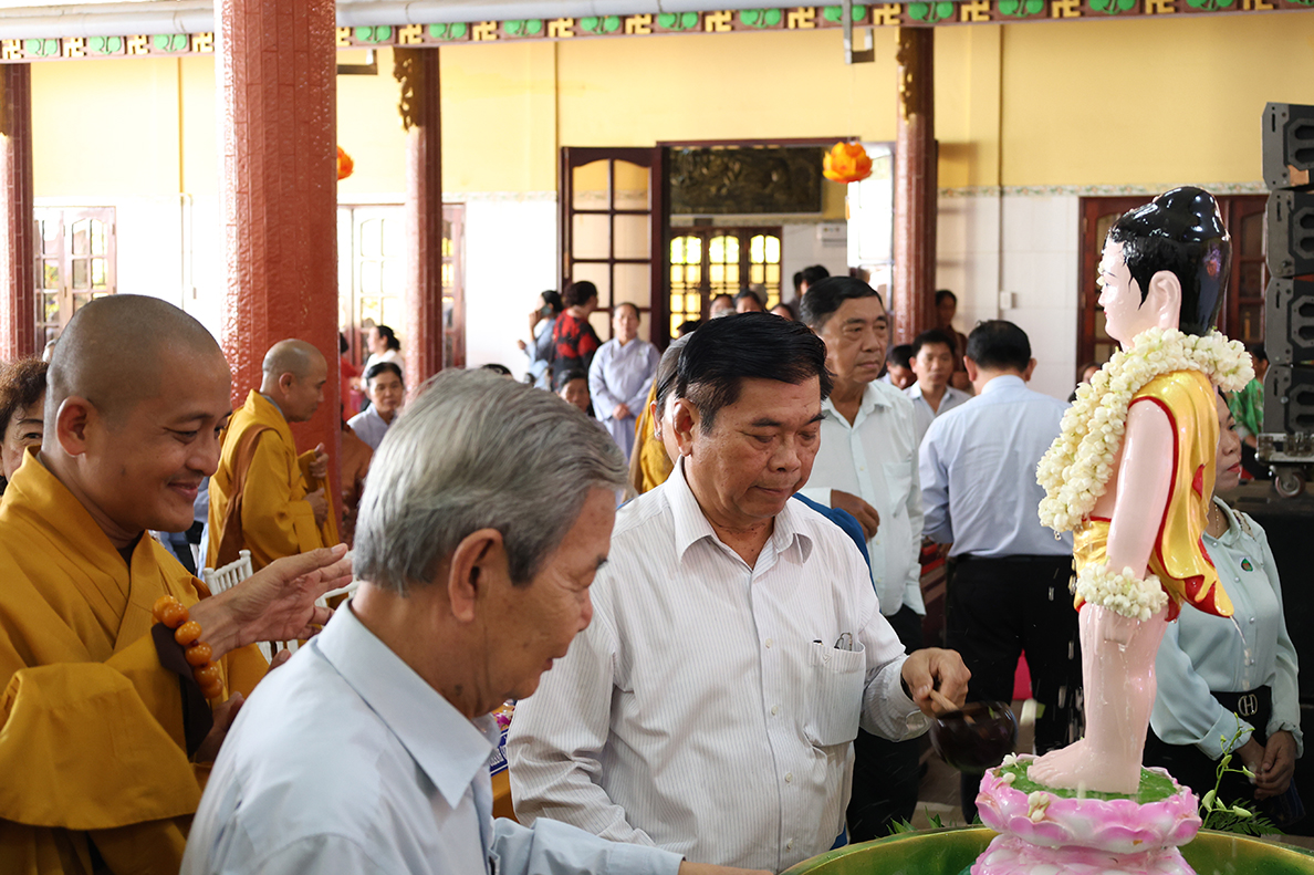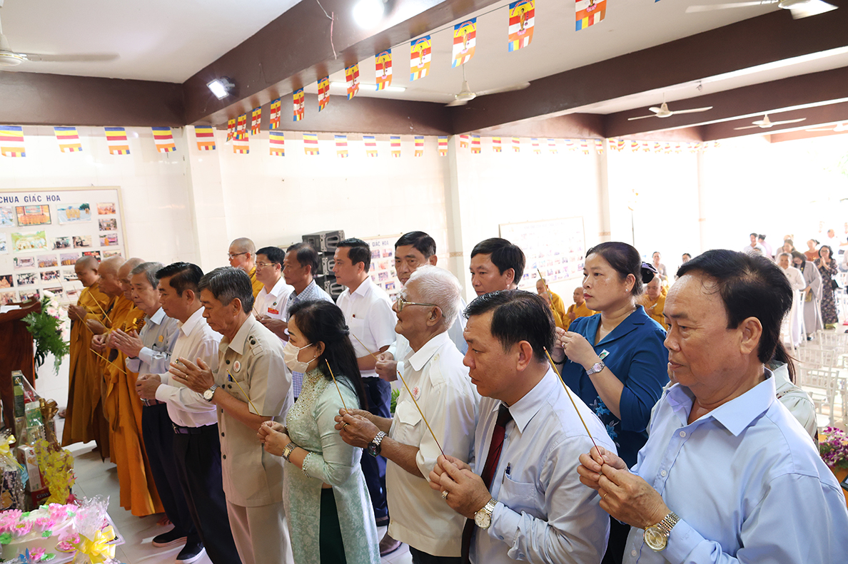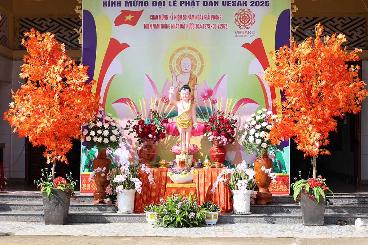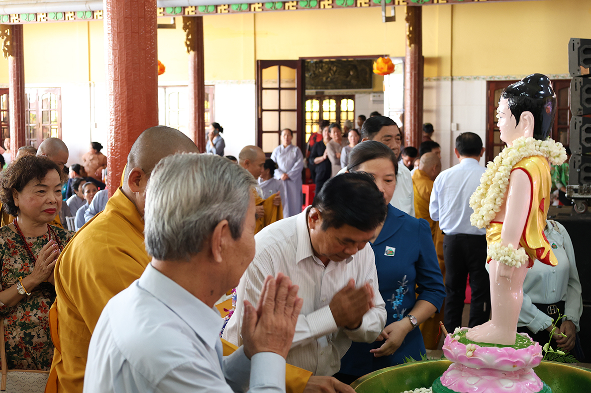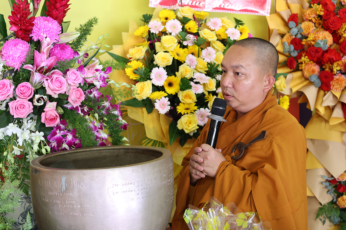 Buổi lễ được hoàn mãn sau lời phát biểu cảm tạ của TT. Thích Lệ Tấn – Trưởng BTS GHPGVN huyện. Sau lễ hành chính, Chư Tôn đức và lãnh đạo chính quyền đã trang nghiêm thực hiện nghi thức cúng dường Phật Đản và tưởng niệm Bồ-tát Thích Quảng Đức.
